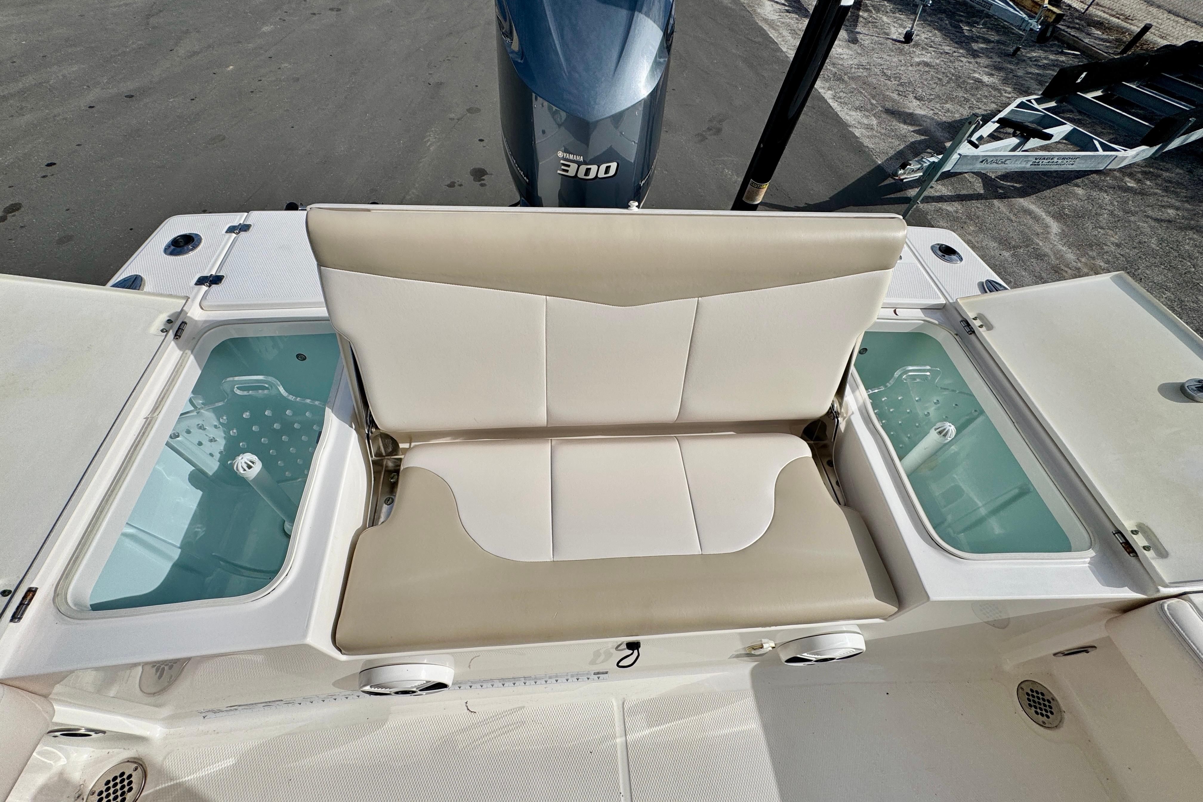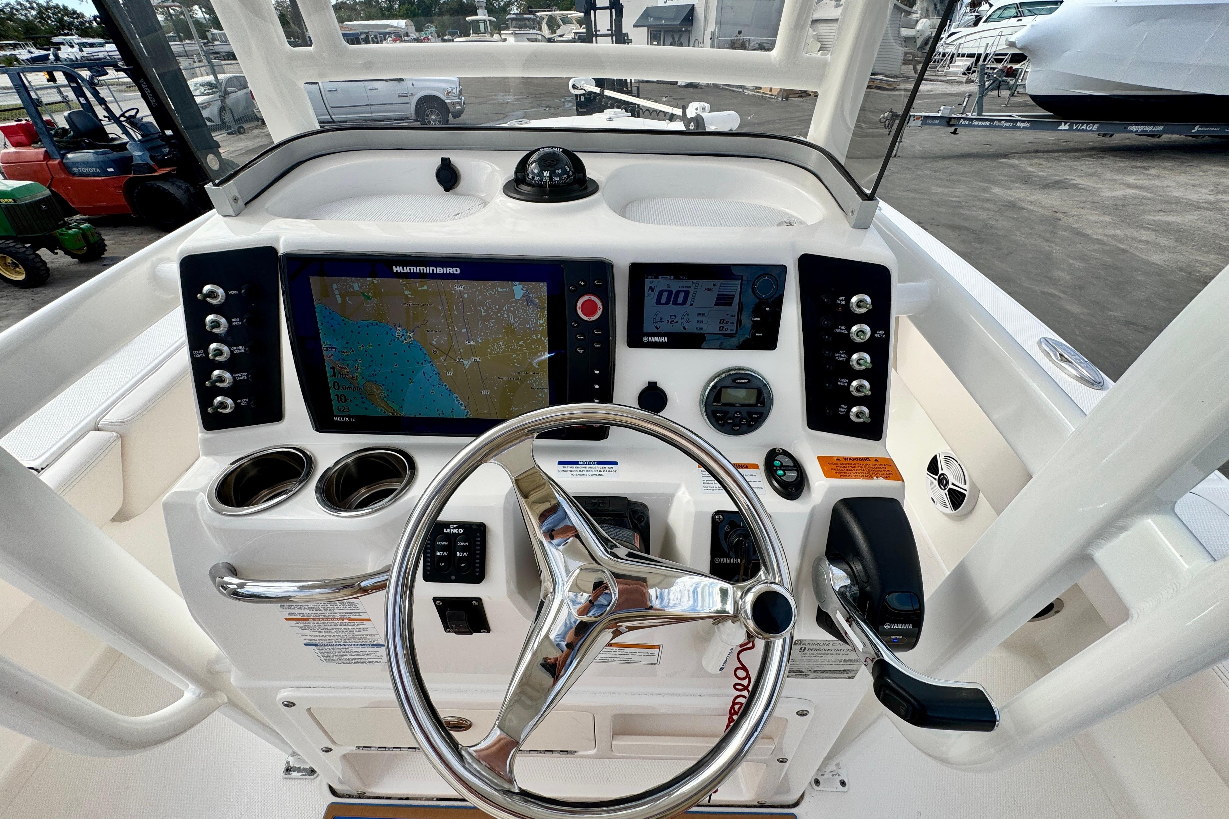 The 246 is built to elevate inshore and offshore fishing, with an Extended V-Plane hull that handles shallow flats and big water with speed, stability, and a dry ride. Its wide deck, aggressive hull flare, and rugged construction allow it to perform confidently in challenging conditions. Hideaway seating quickly converts the boat into a serious fishing platform, featuring expansive casting decks, best-in-class rod storage, and live bait capacity. Designed for extended days on the water, it includes a privacy head, wraparound bow seating, an advanced helm with room for electronics, and durable Kevlar-reinforced, rot-free construction.
