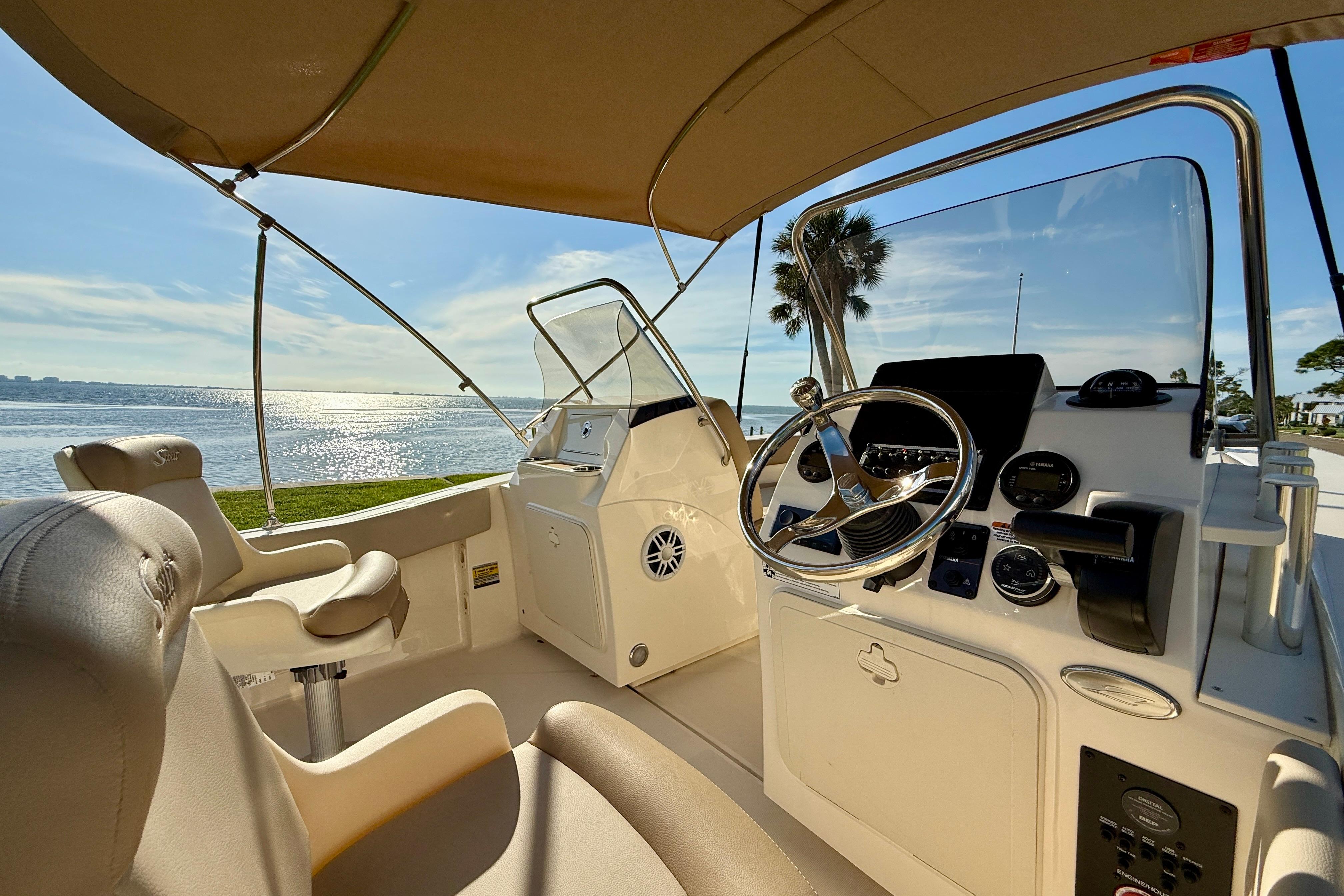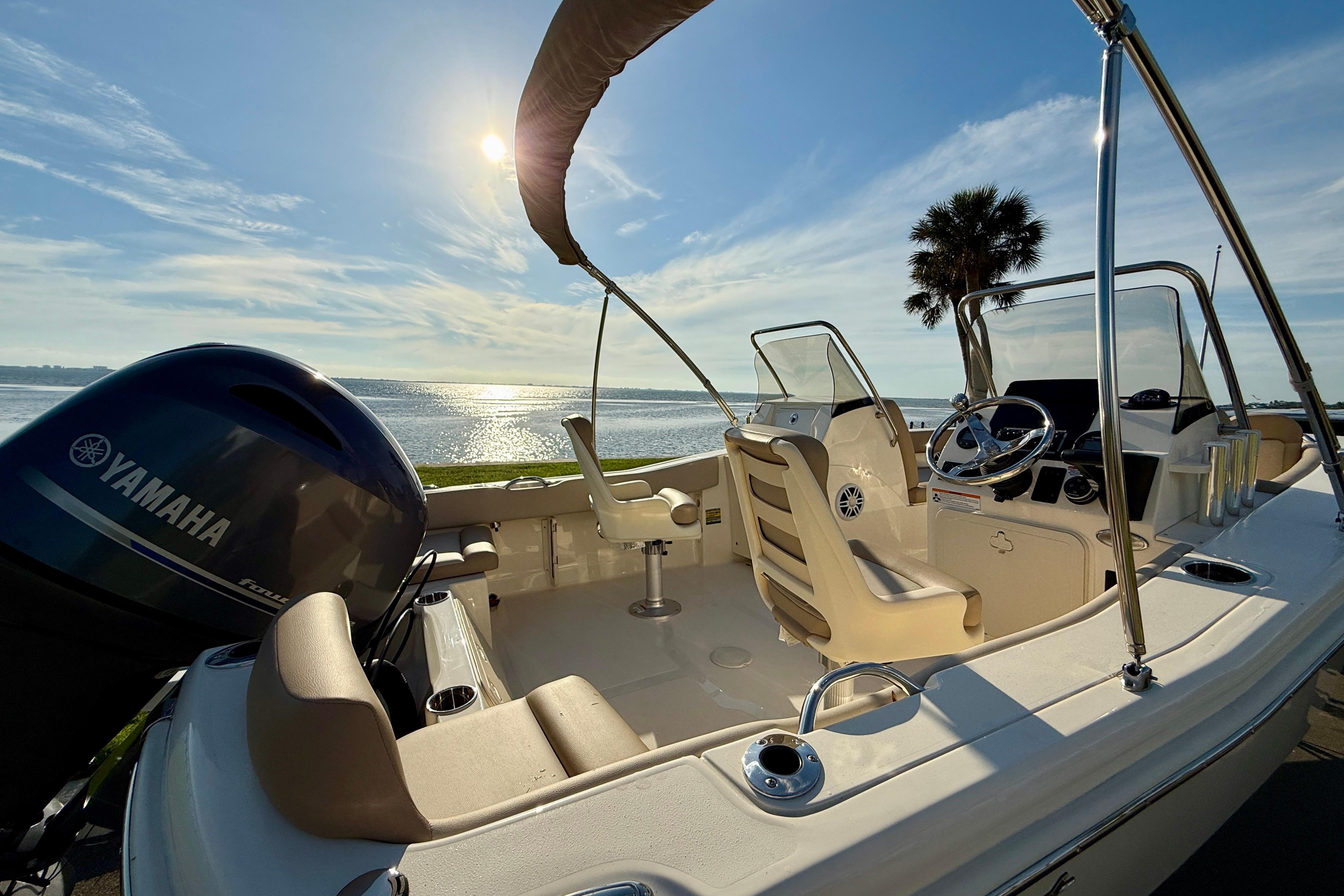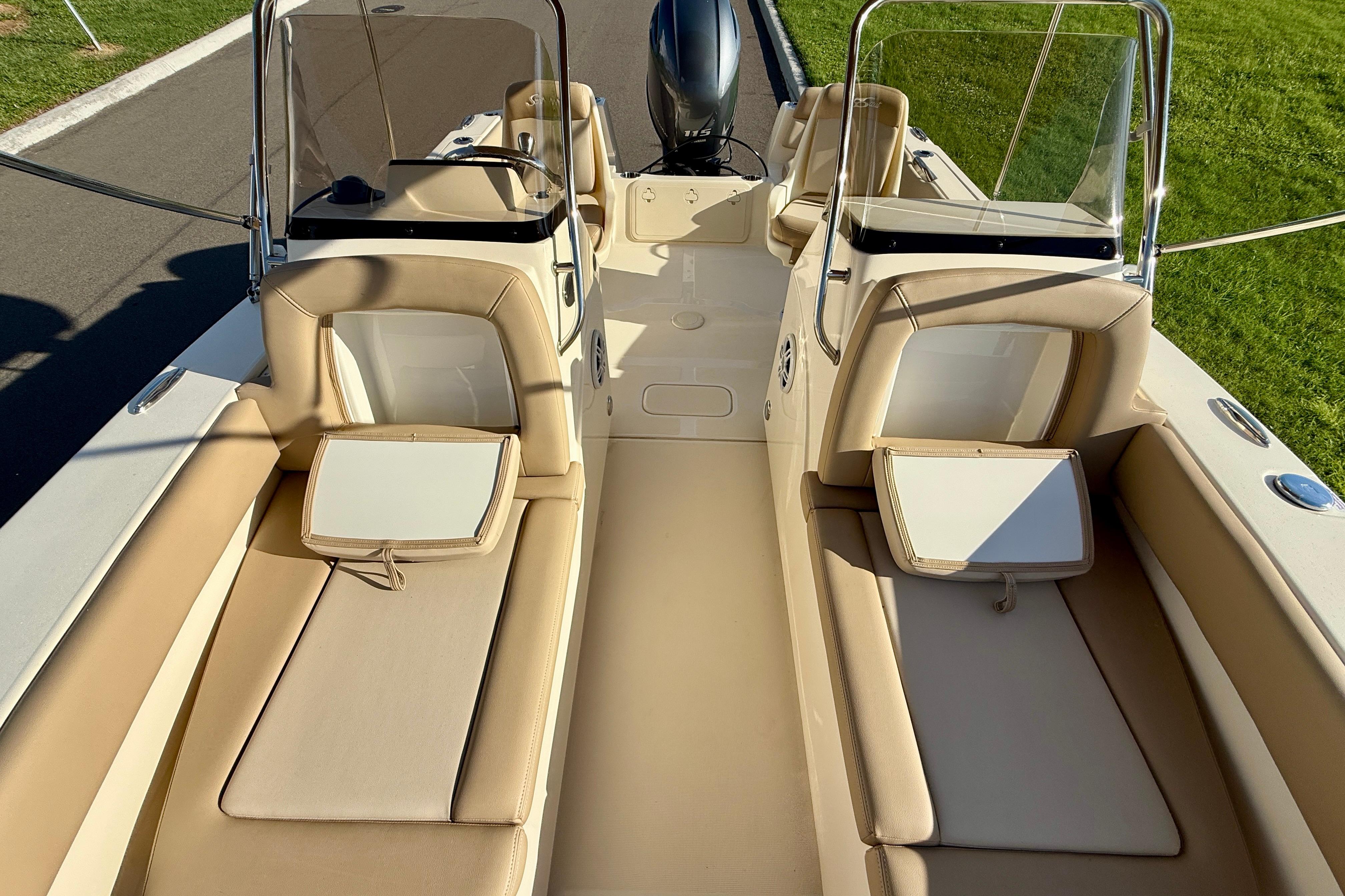 The 195 Sport Dorado is smartly designed to accommodate all your on-the-water activities. It has ample rod storage including four S.S. flush mounted rod holders, under gunnel rod storage, and six console rod holders. A port aft recirculating baitwell, bow cushion set, under gunnel LED lights, a swim platform with ladder, and unique hidden storage compartments in the bow cushion backrests are just some of the notable standard features.