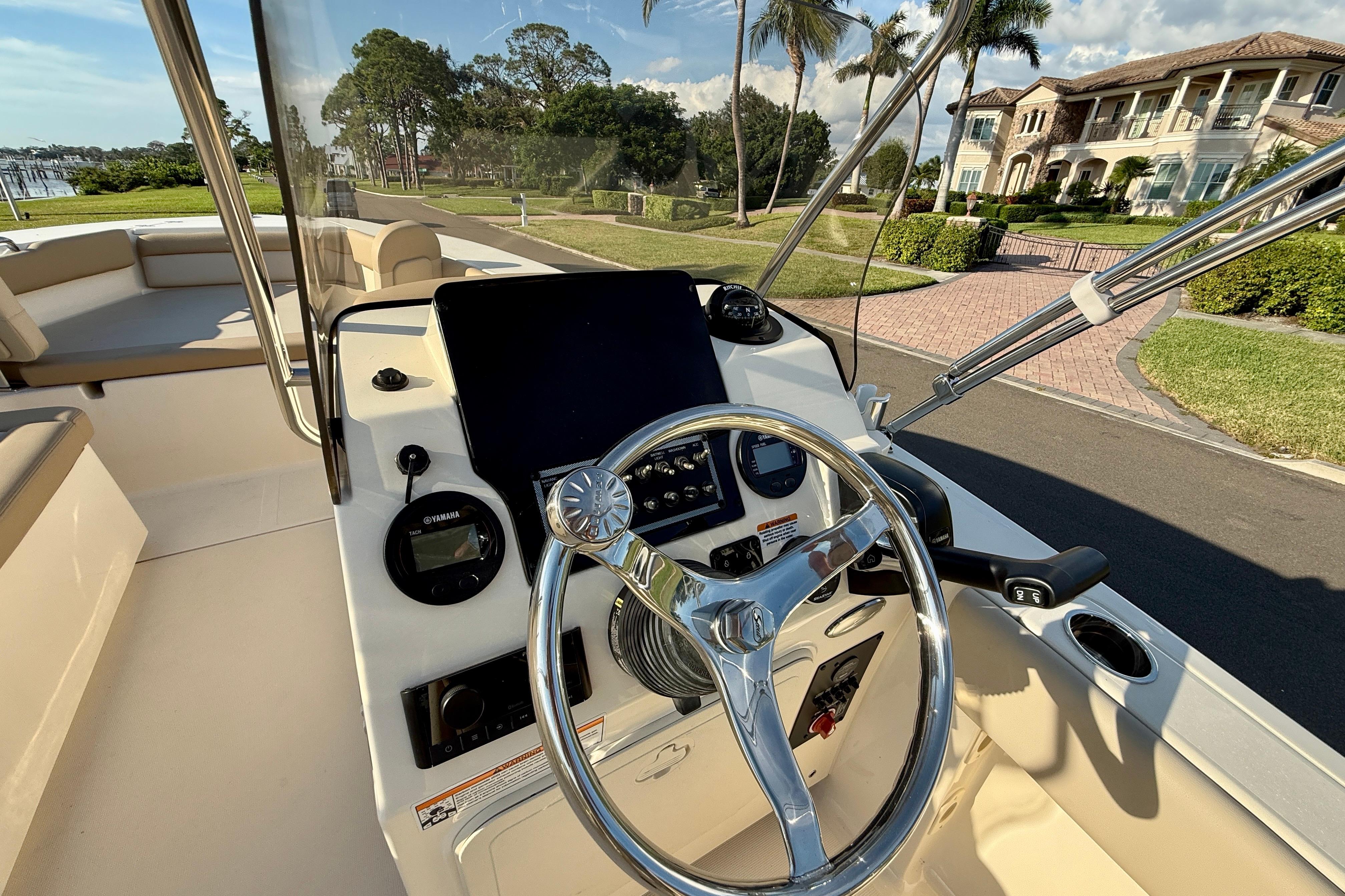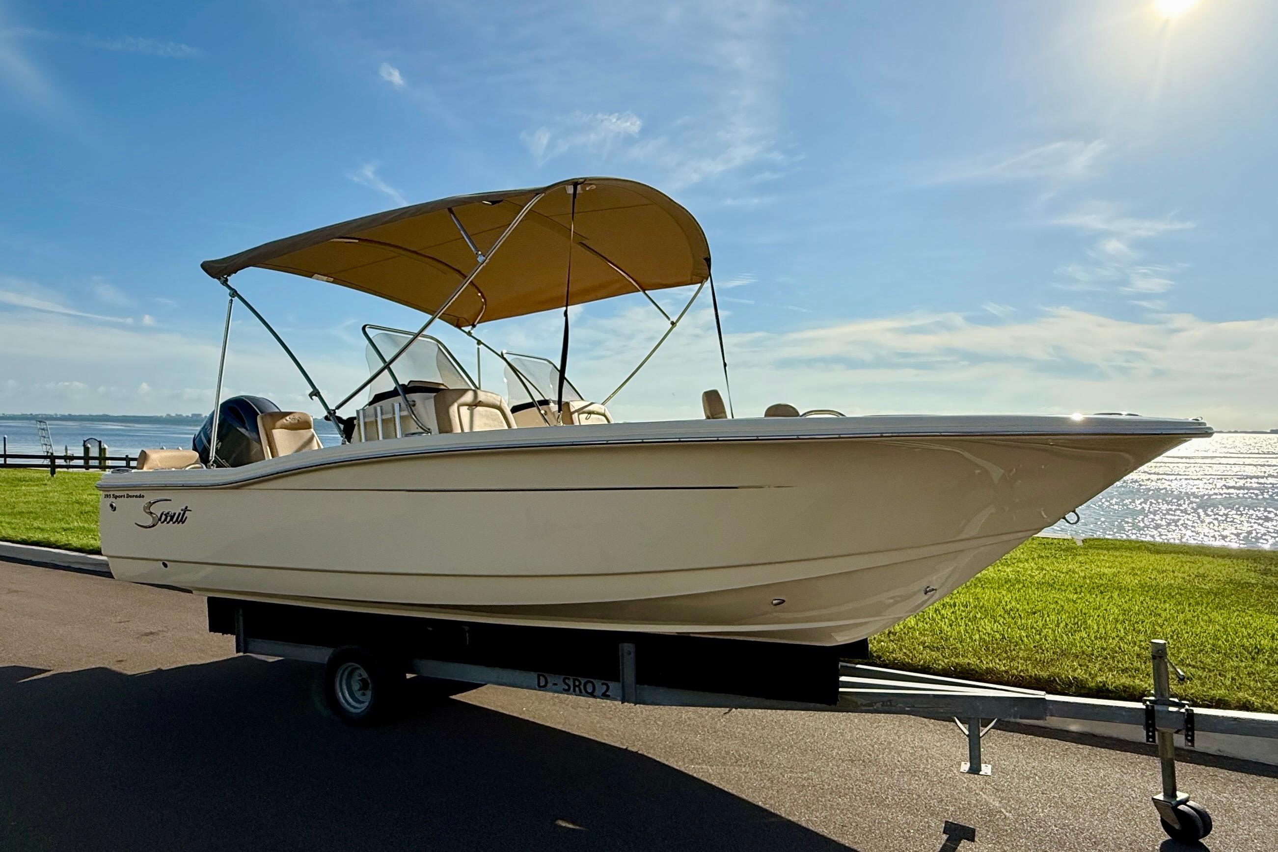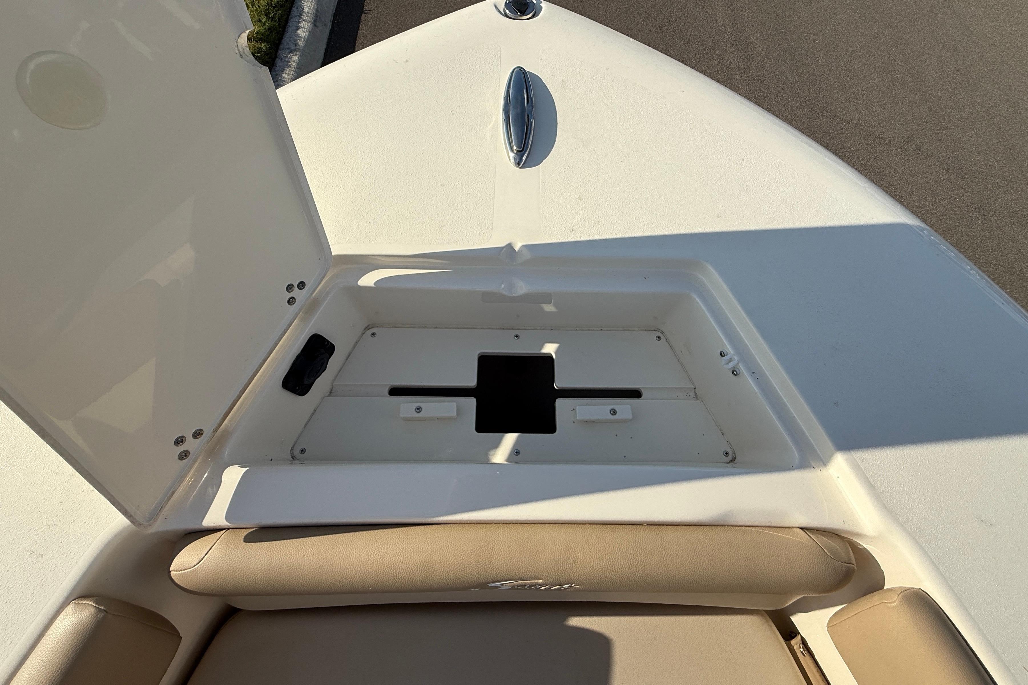 The 195 Sport Dorado is smartly designed to accommodate all your on-the-water activities. It has ample rod storage including four S.S. flush mounted rod holders, under gunnel rod storage, and six console rod holders. A port aft recirculating baitwell, bow cushion set, under gunnel LED lights, a swim platform with ladder, and unique hidden storage compartments in the bow cushion backrests are just some of the notable standard features.