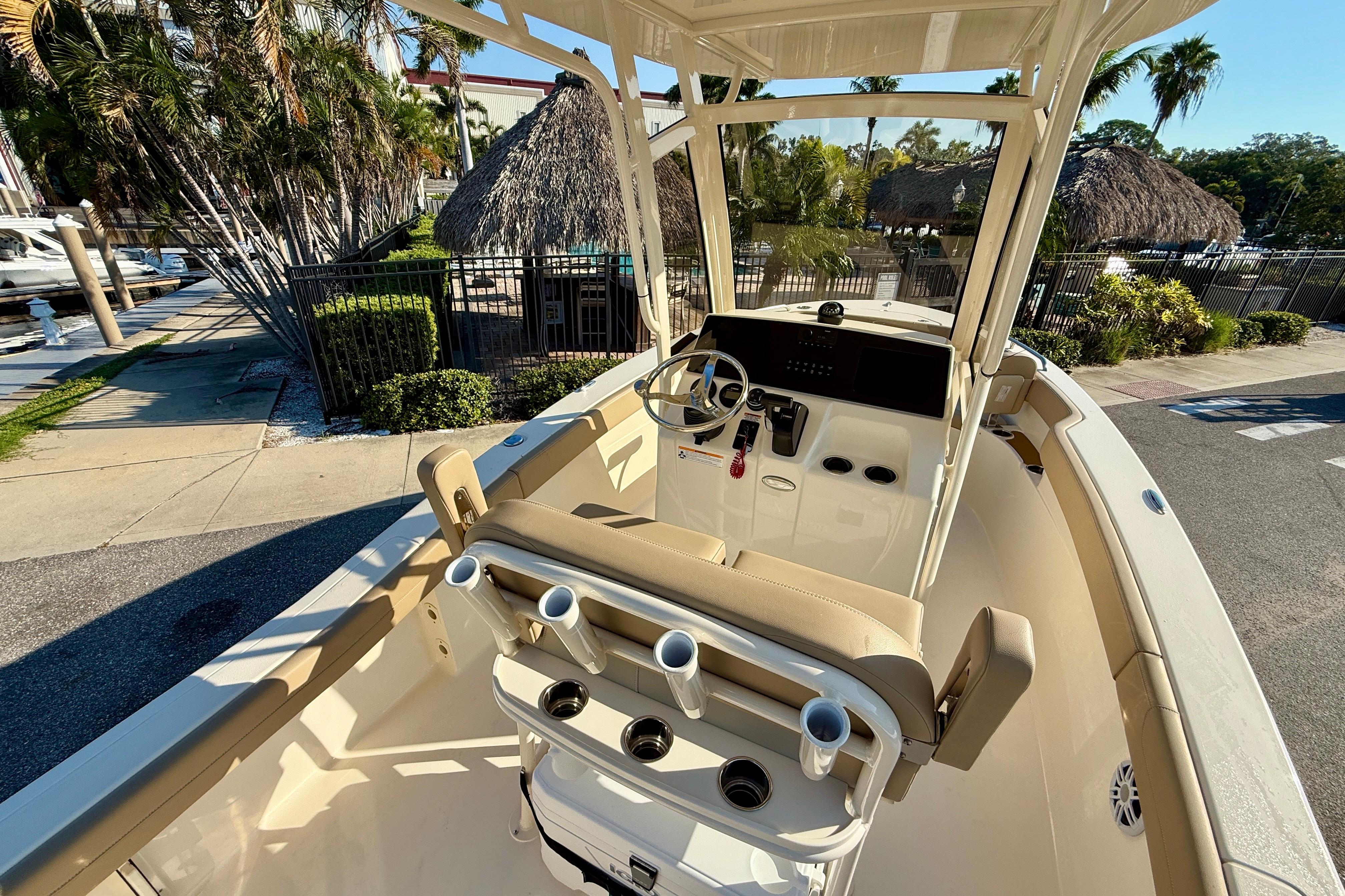 - Elite Package including FWD Seat Backrests, Powder Coated Hardtop w/ Full Enclosed Windshield, & Folding Stern Seat
