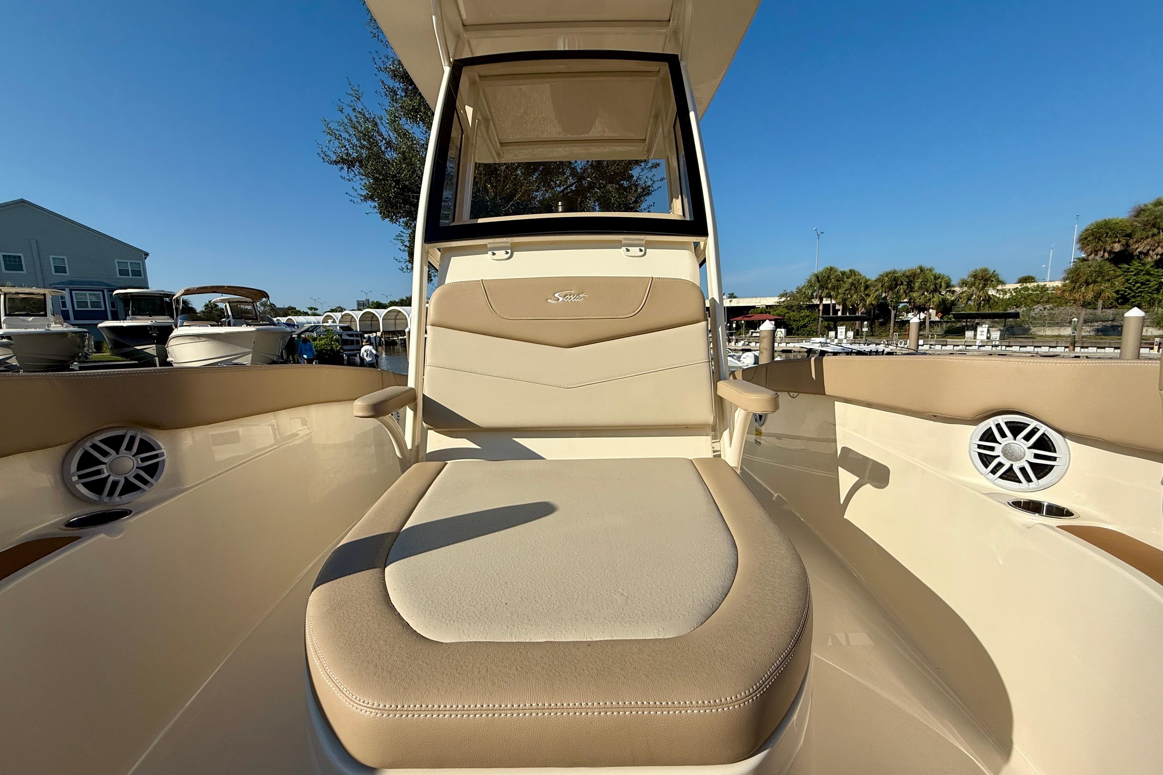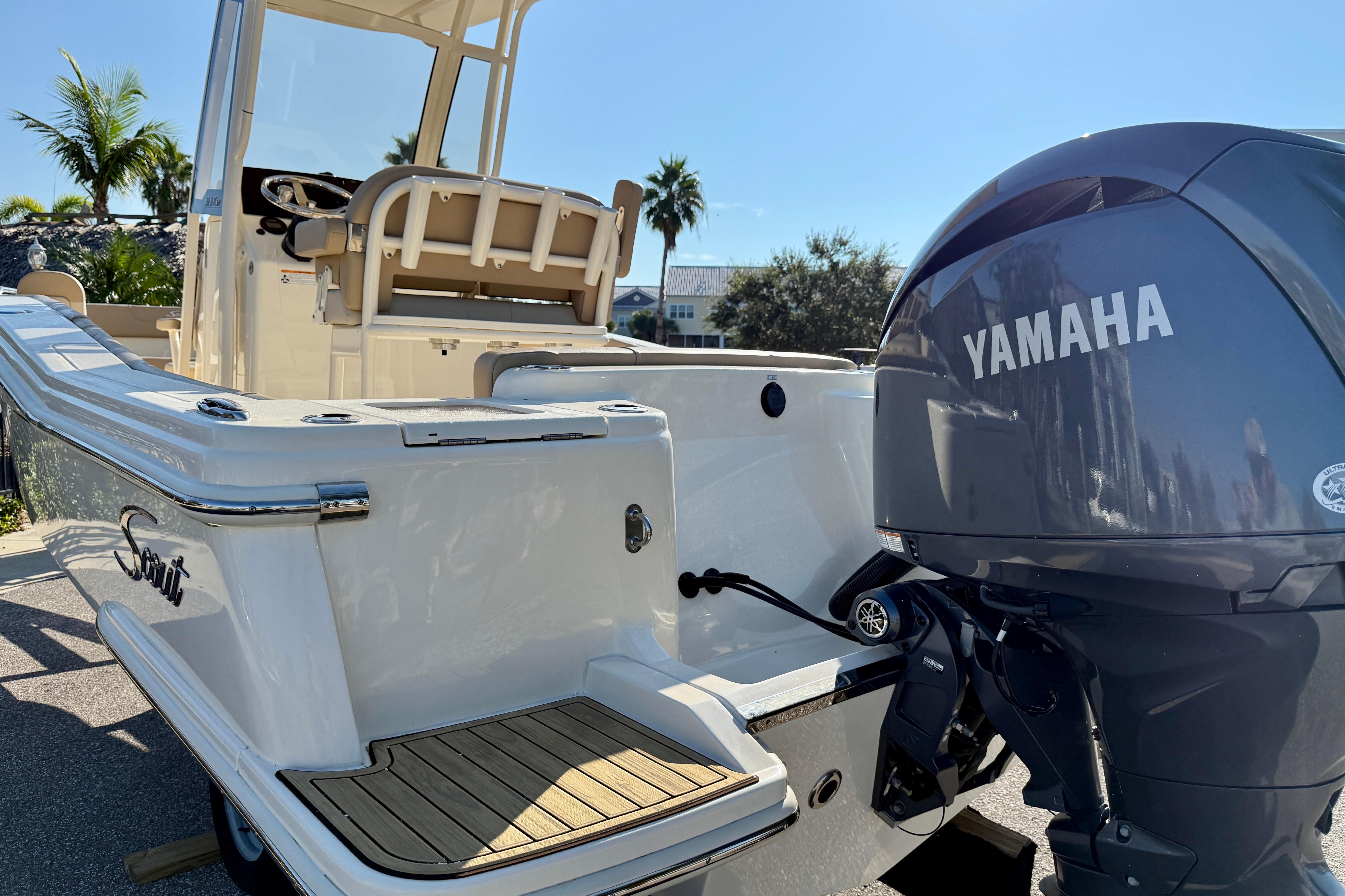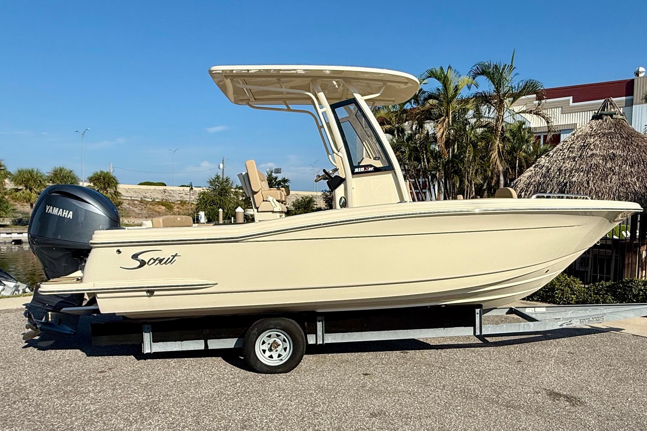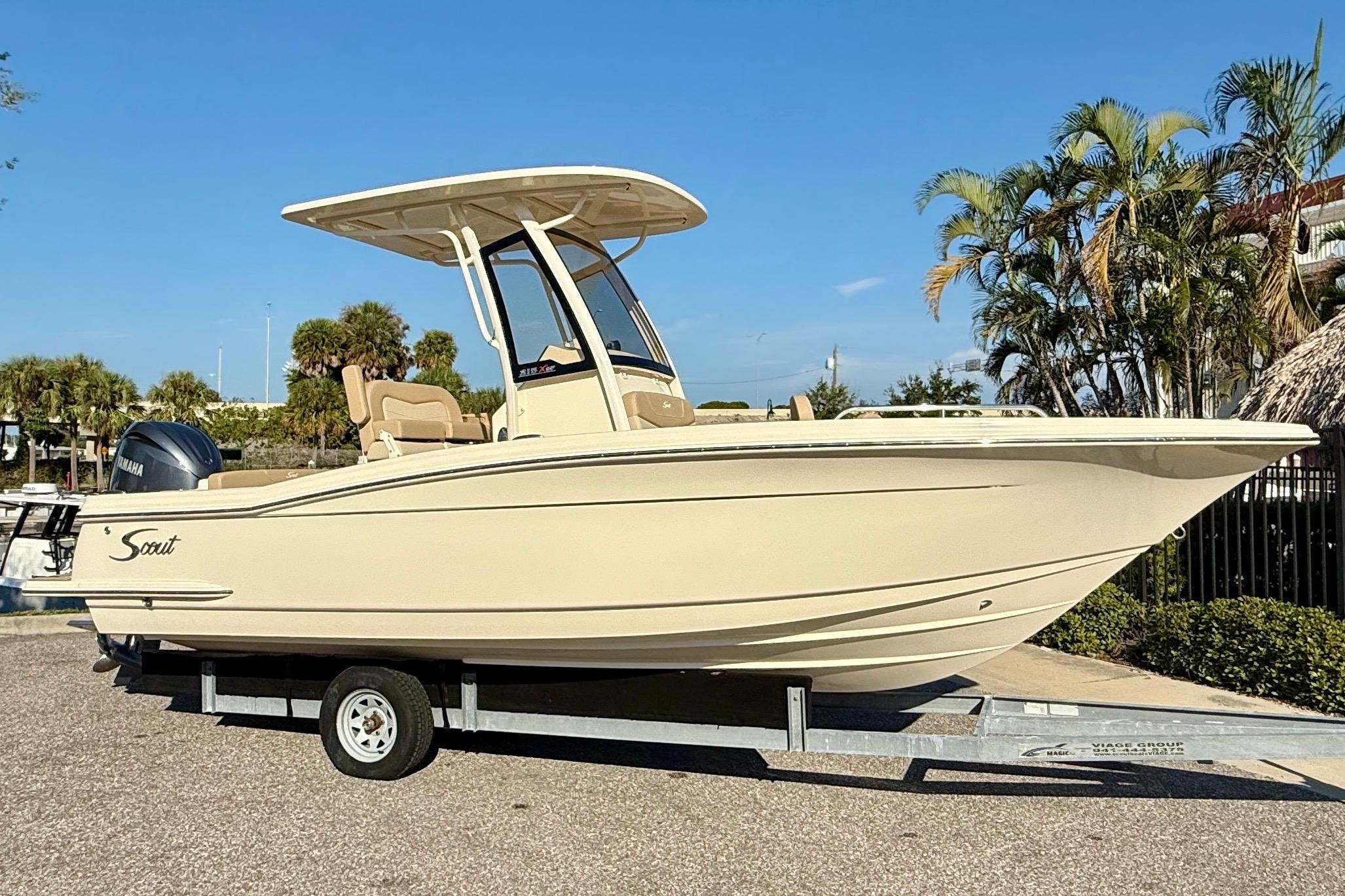 The 215 XSF is built on Scout’s revolutionary fuel saving NuV3 hull design, while the deck offers ample standard amenities for everything from serious fishing to comfort cruising. Built with 100% hand-laid fiberglass, the boat boasts a wide comfortable beam of 8’ 6” with an overall length of 21’ 6”. A notable standard feature onboard the 215 includes not only the forward seating in the bow, but also a forward sun lounge/coffin box complete with a cushion.