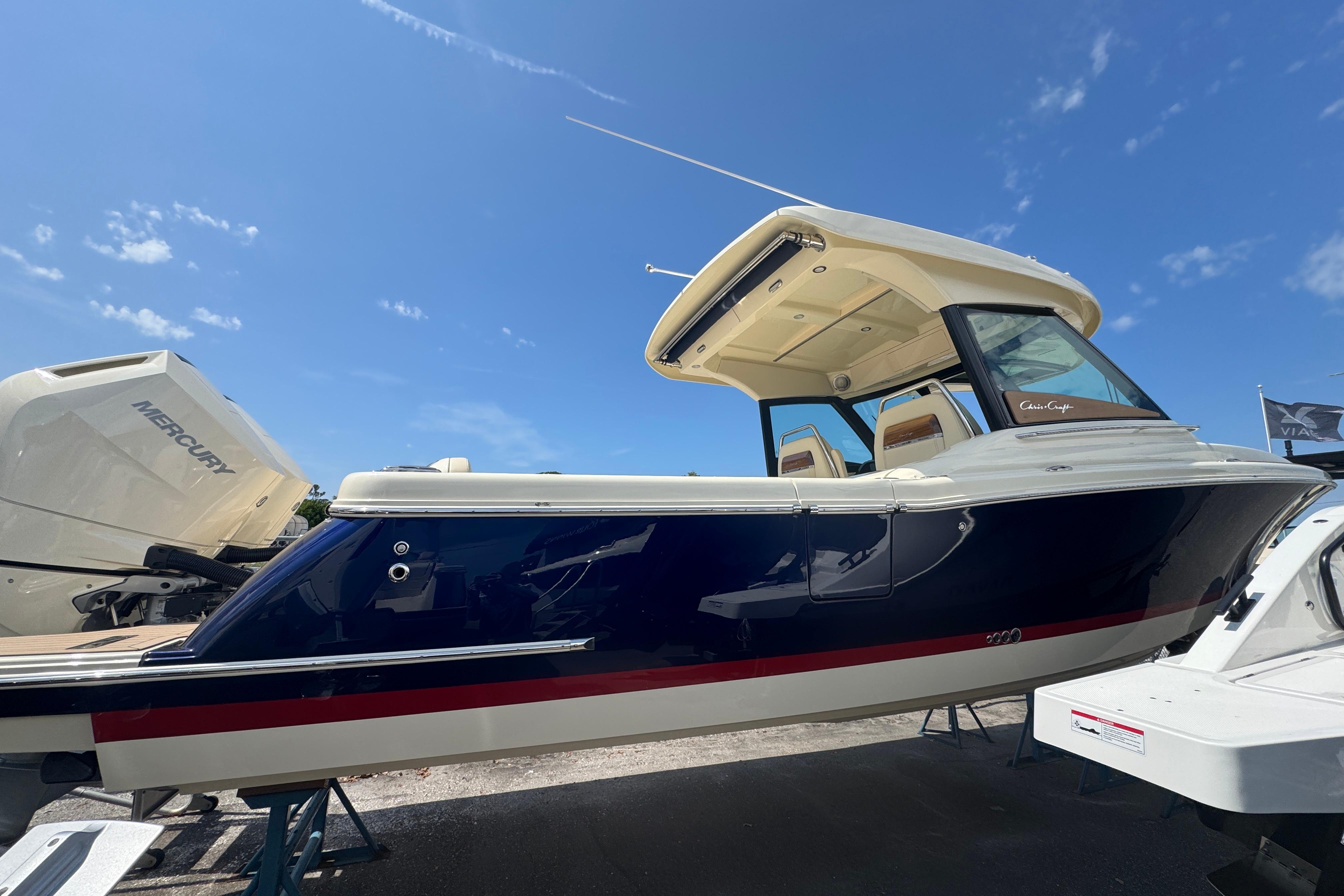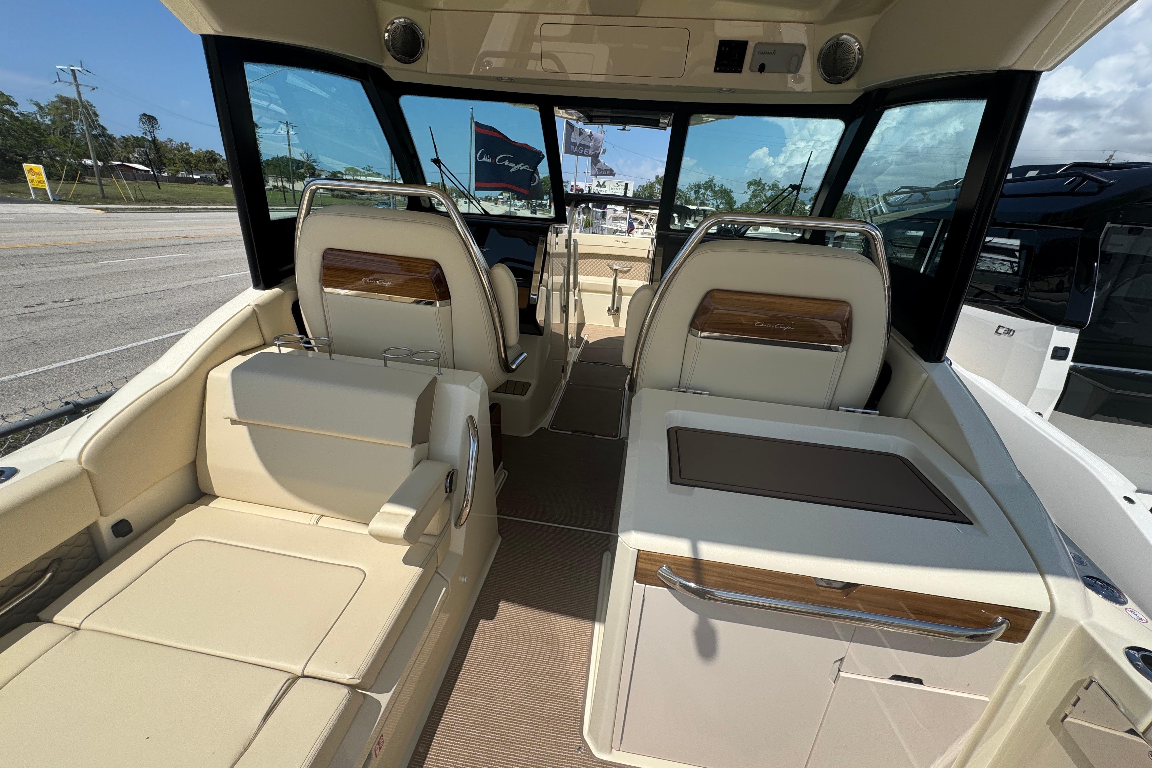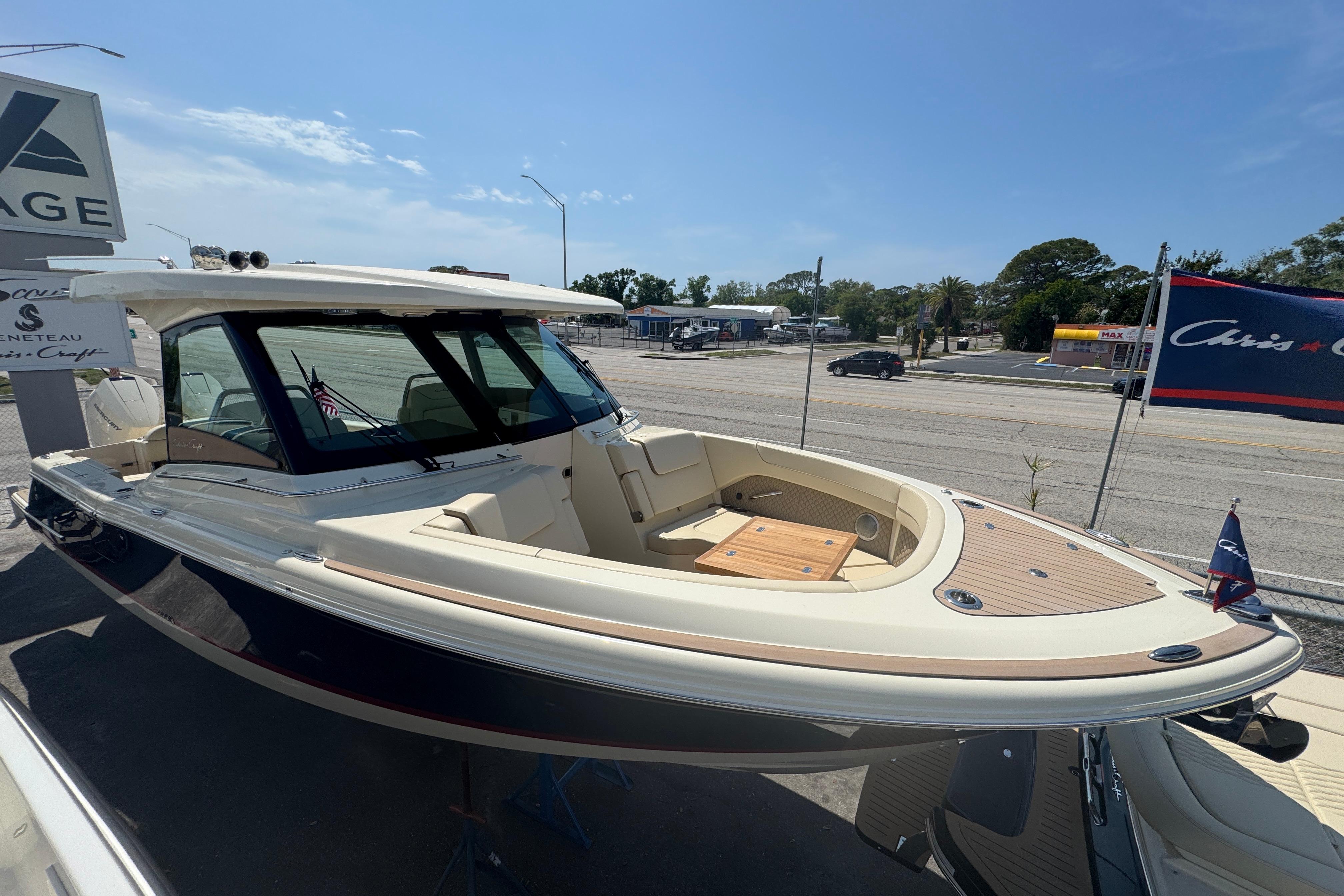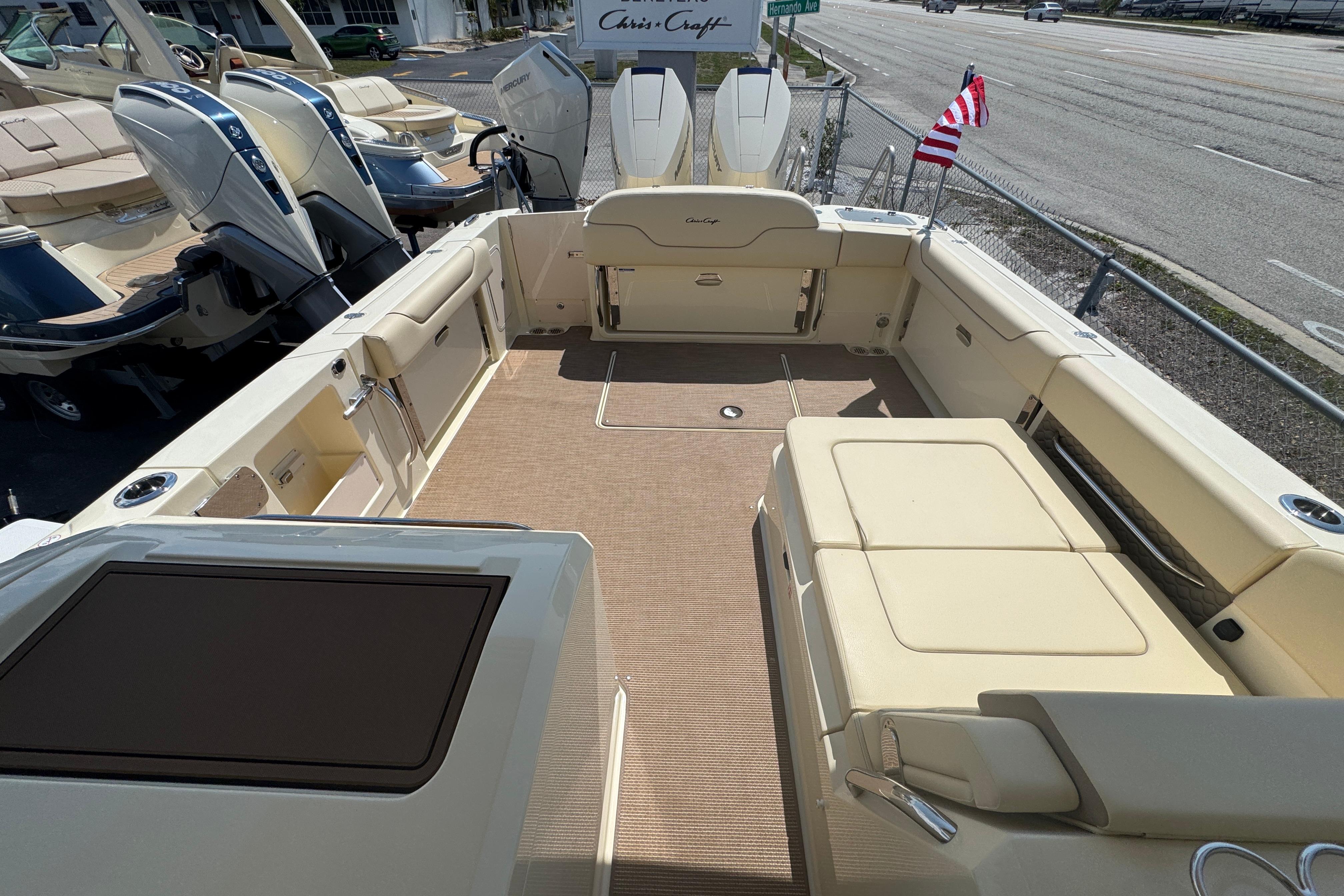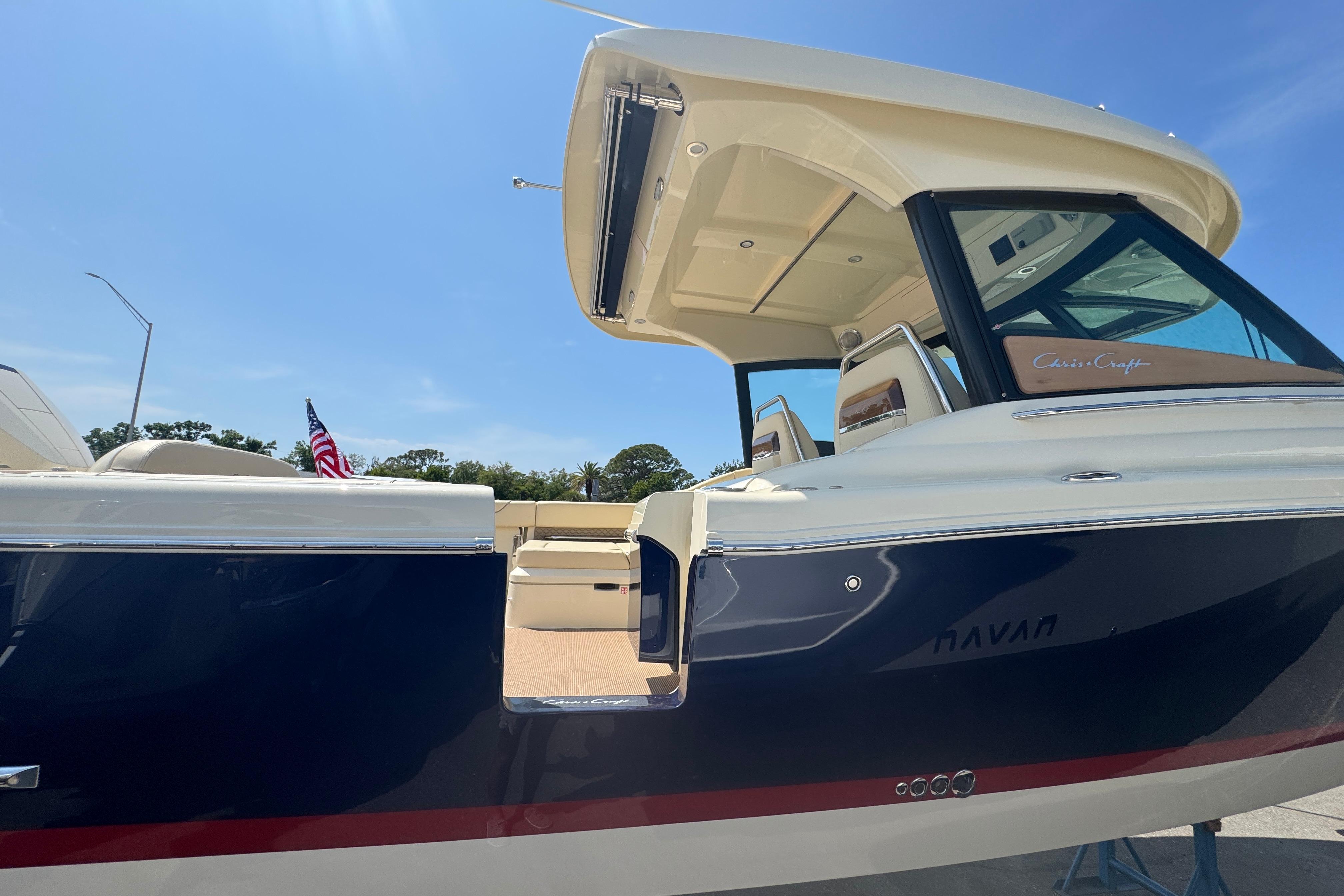 The Calypso 32 blends sophistication and style with the latest marine technology. Classic Chris-Craft styling runs from bow to stern, with stainless steel hardware, custom appointments, and our signature flared bow and deep-v hull. With Seakeeper Ride technology, inductive phone charging, and connectivity to the MyChris-Craft App all standard, this is truly a boat to marvel.