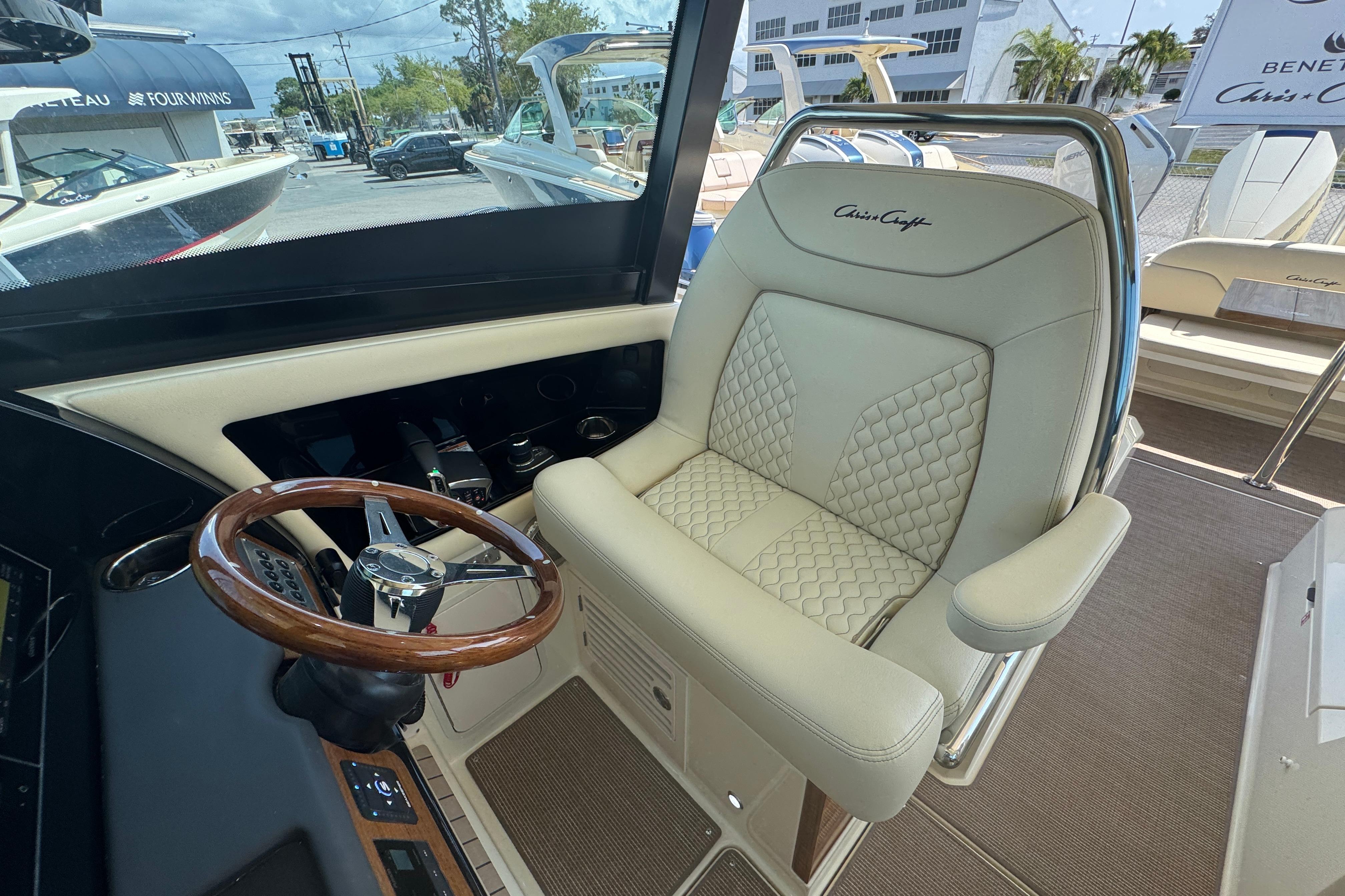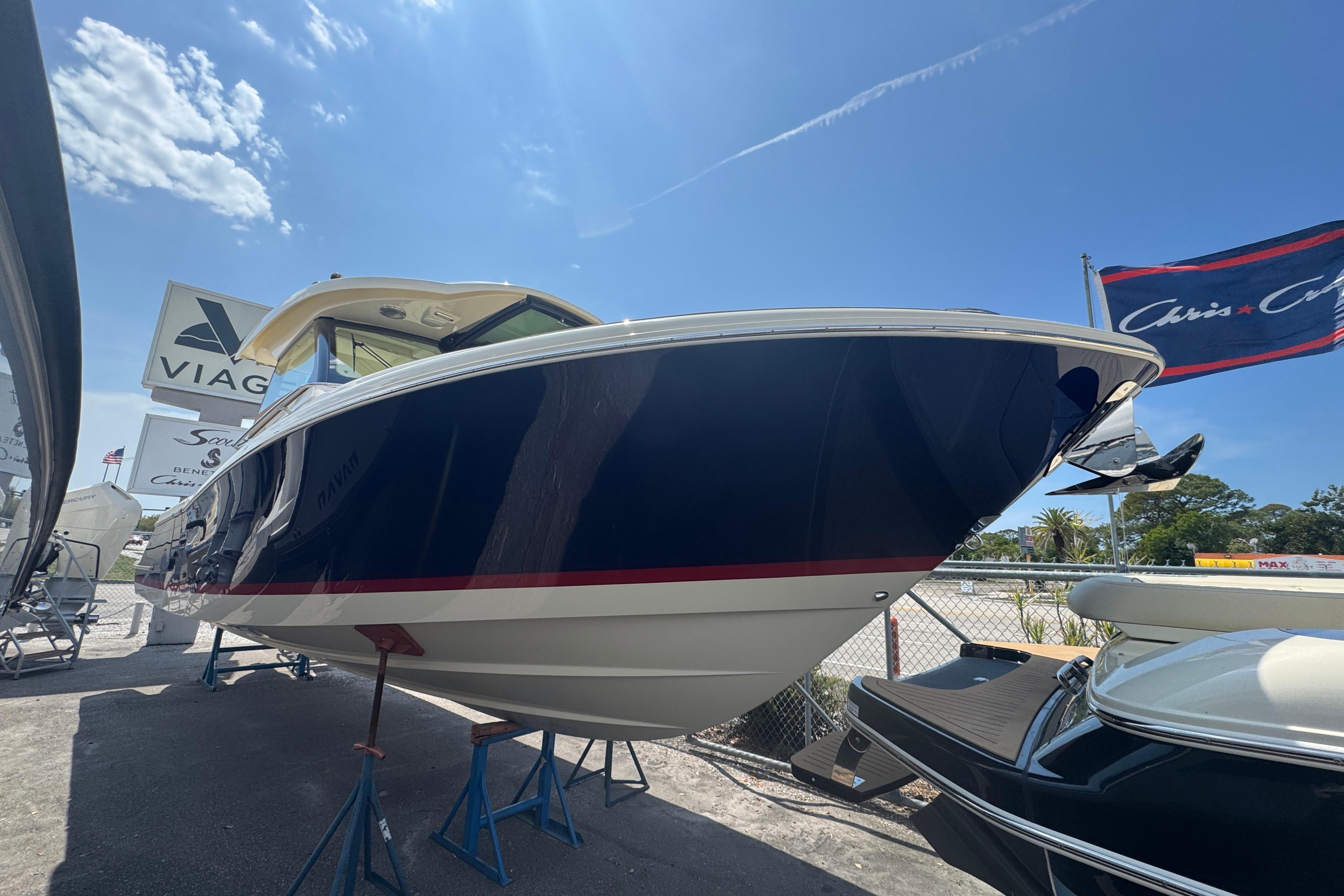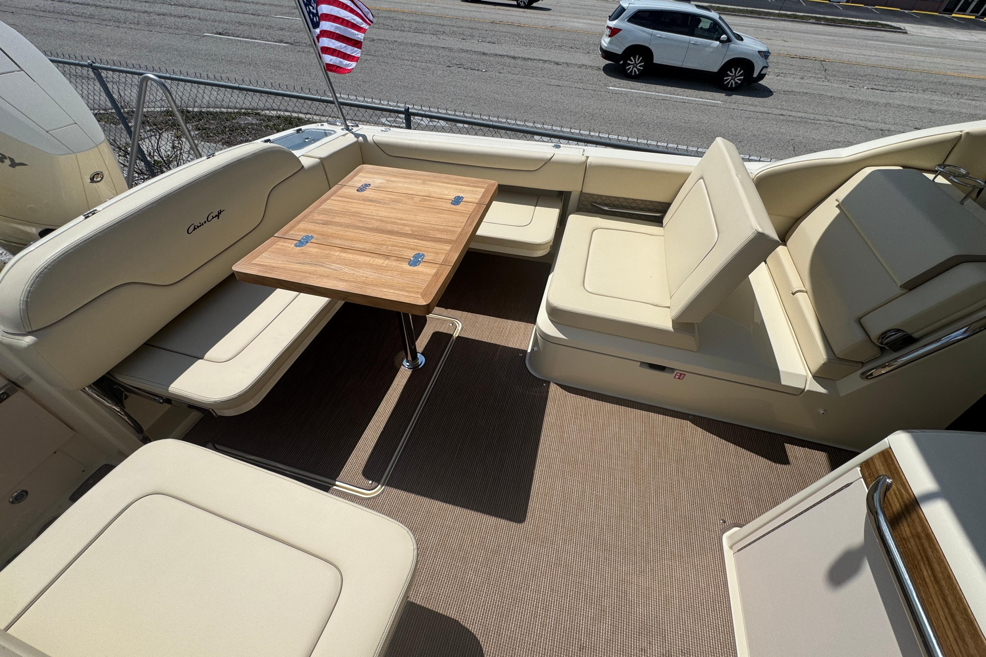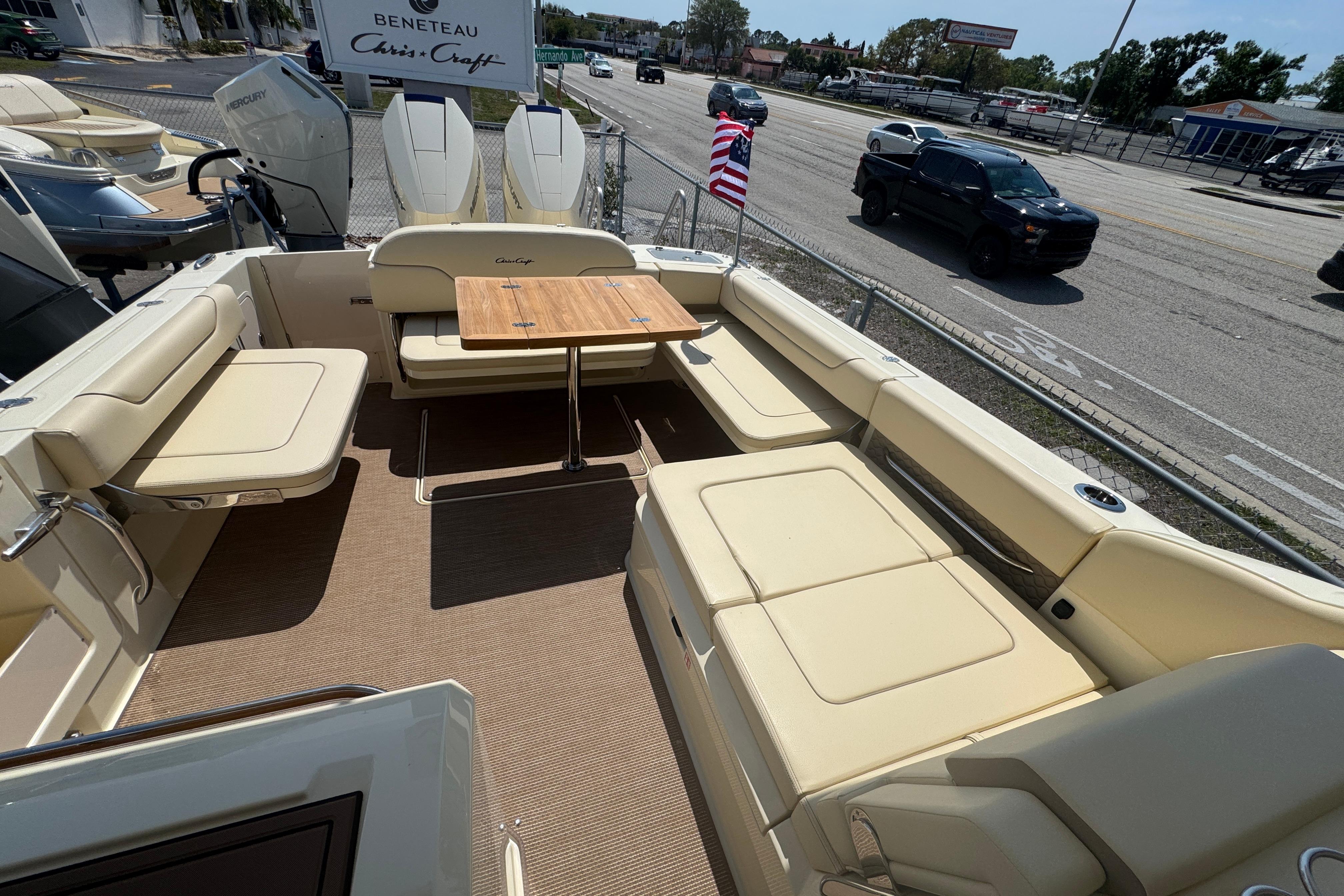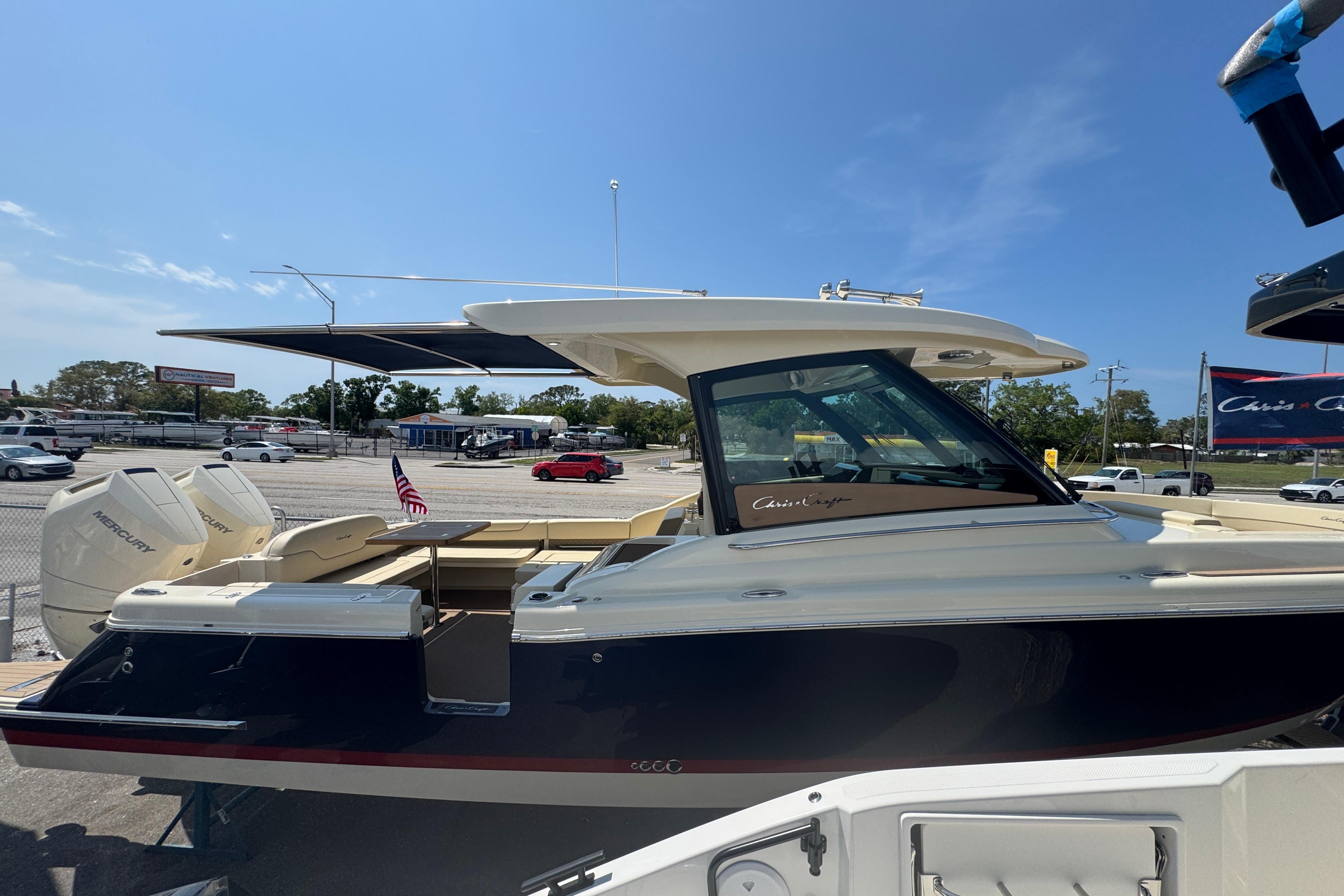 The Calypso 32 blends sophistication and style with the latest marine technology. Classic Chris-Craft styling runs from bow to stern, with stainless steel hardware, custom appointments, and our signature flared bow and deep-v hull. With Seakeeper Ride technology, inductive phone charging, and connectivity to the MyChris-Craft App all standard, this is truly a boat to marvel.