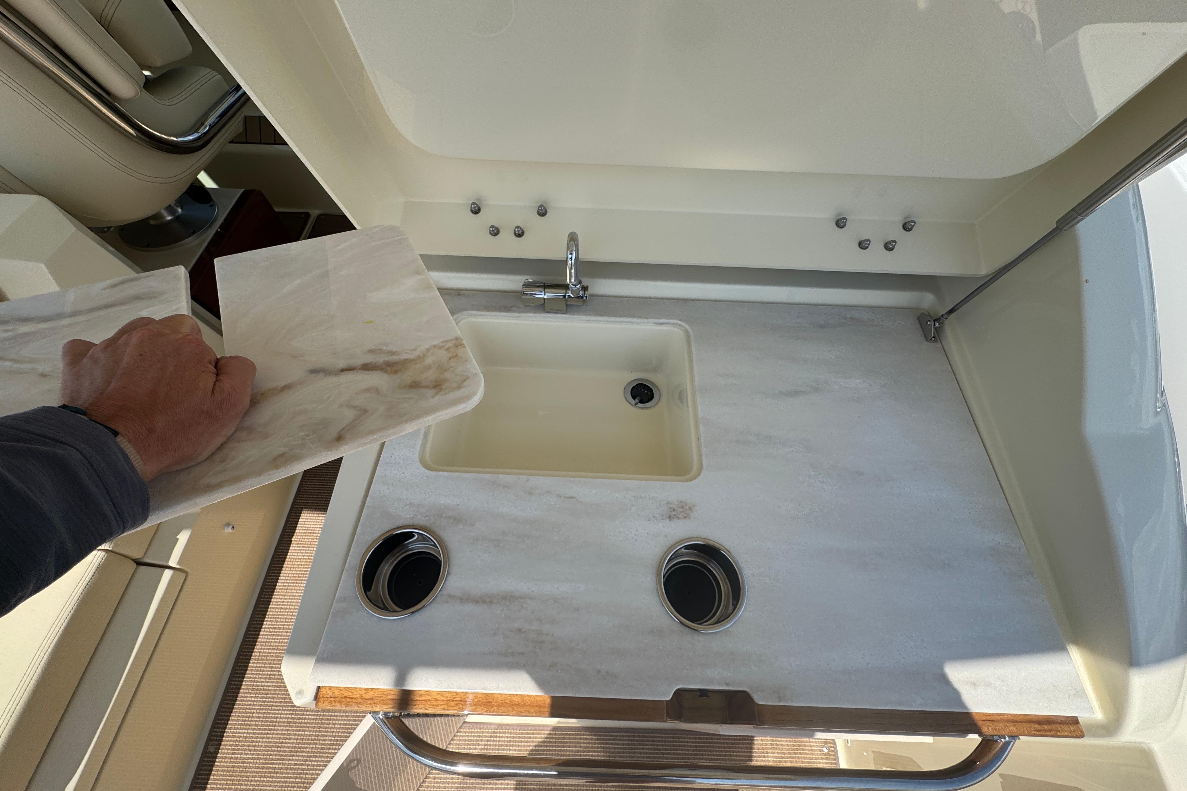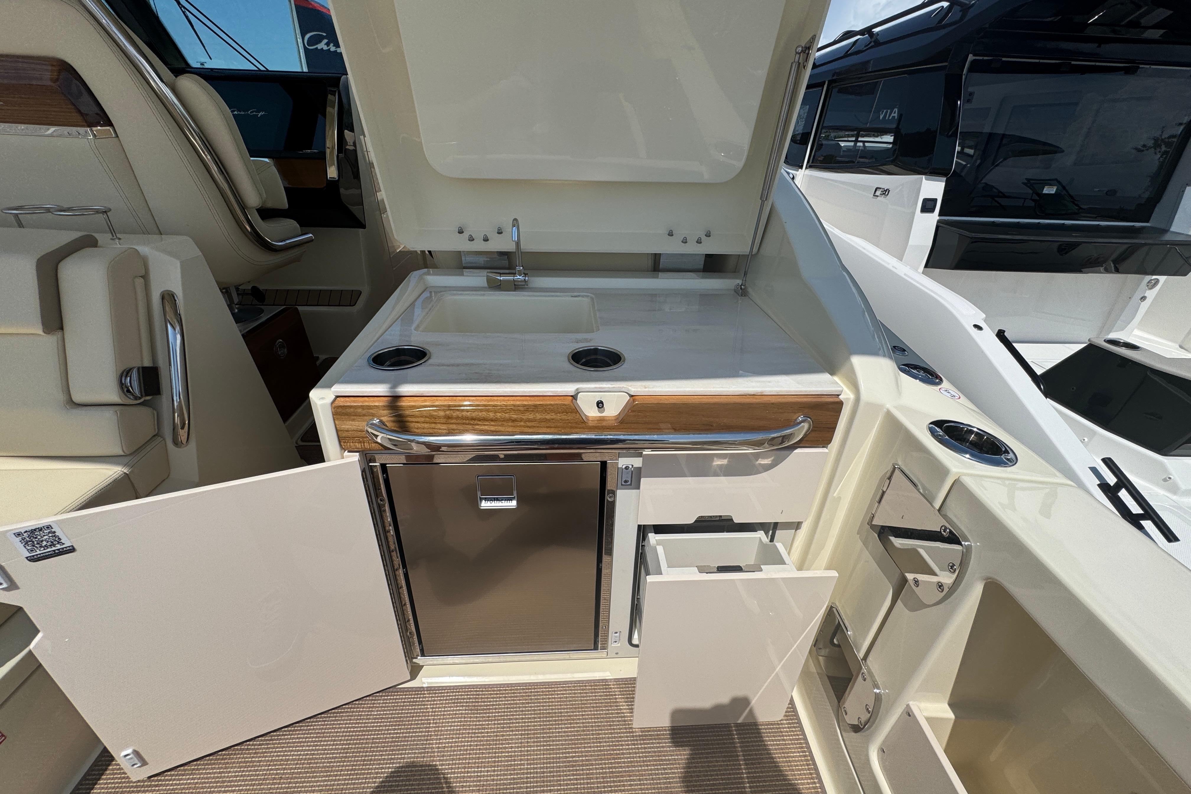 - Cockpit Galley w/Sink, Refrigerator, & Storage