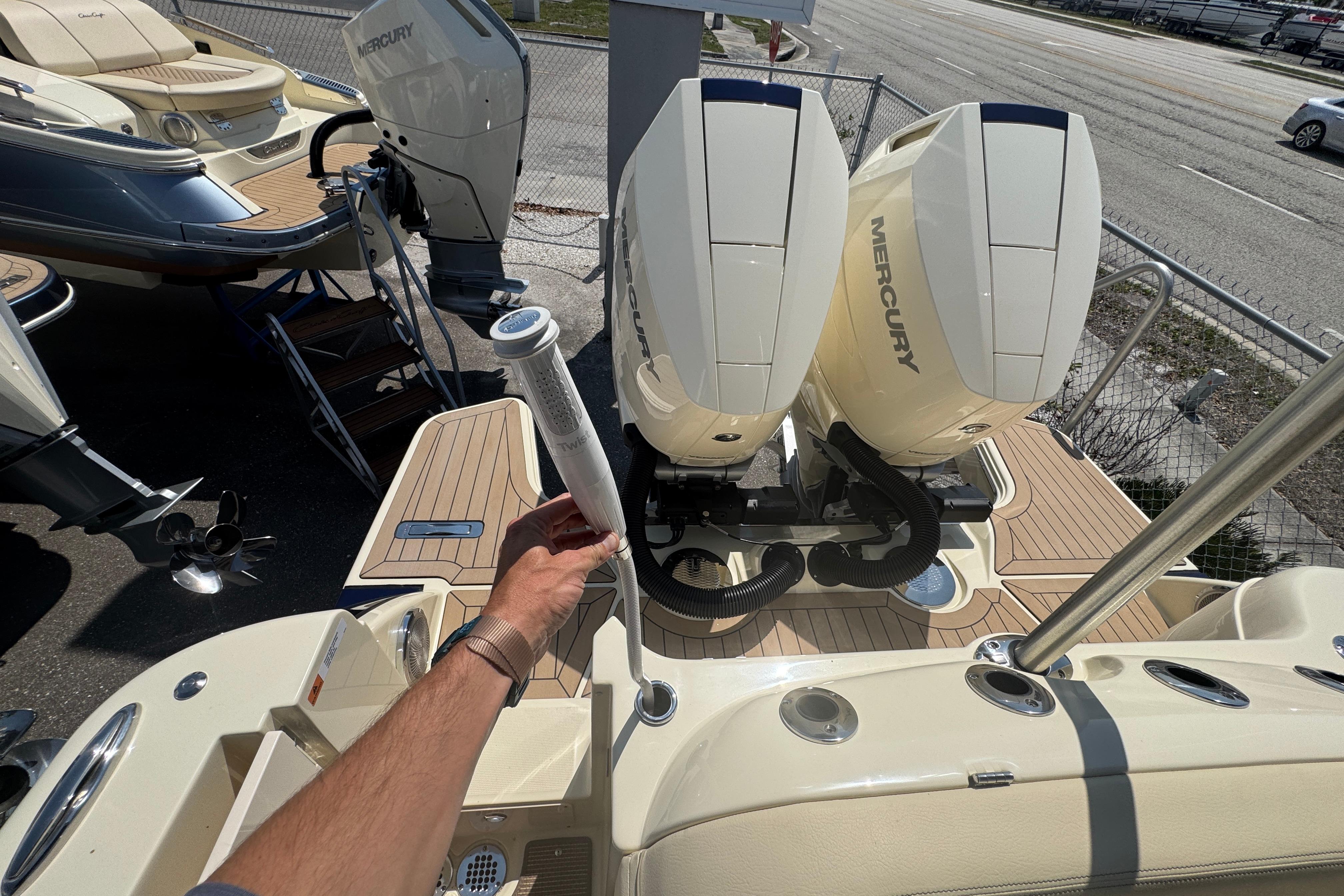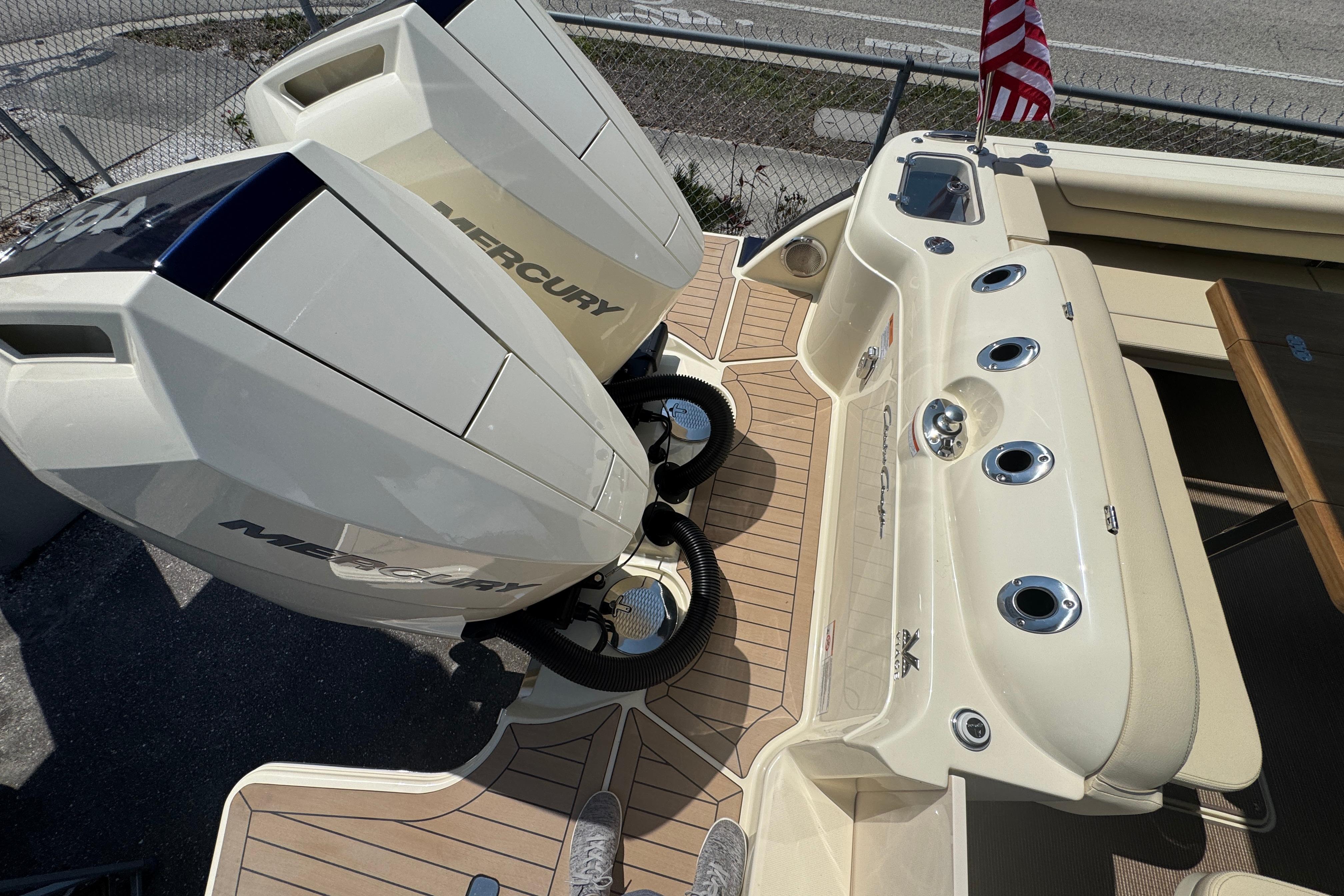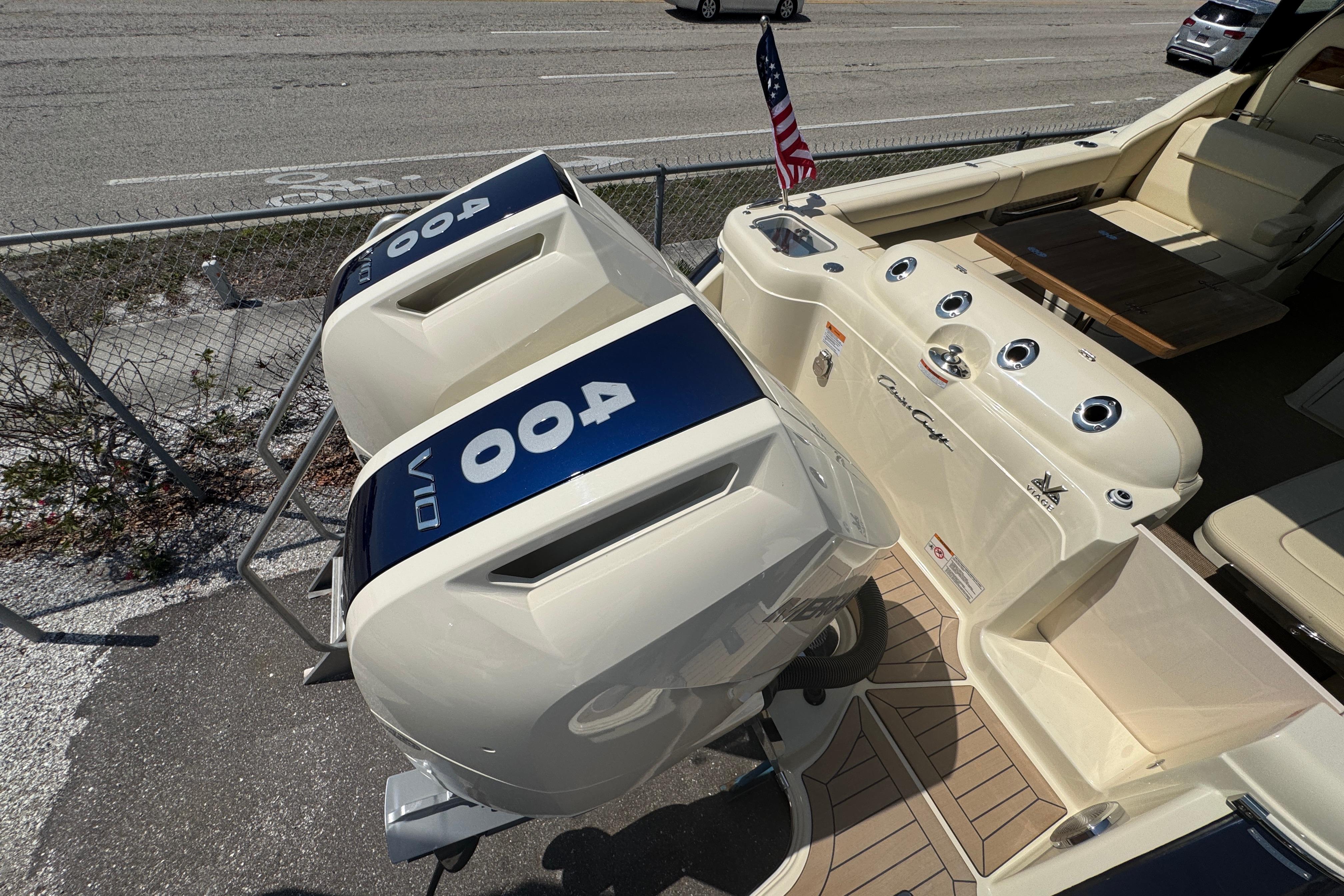 - Twin Mercury 400 Verado's w/Joystick Piloting, Electric Steering, Active Trim, Skyhook, Heading Hold, & Autopilot