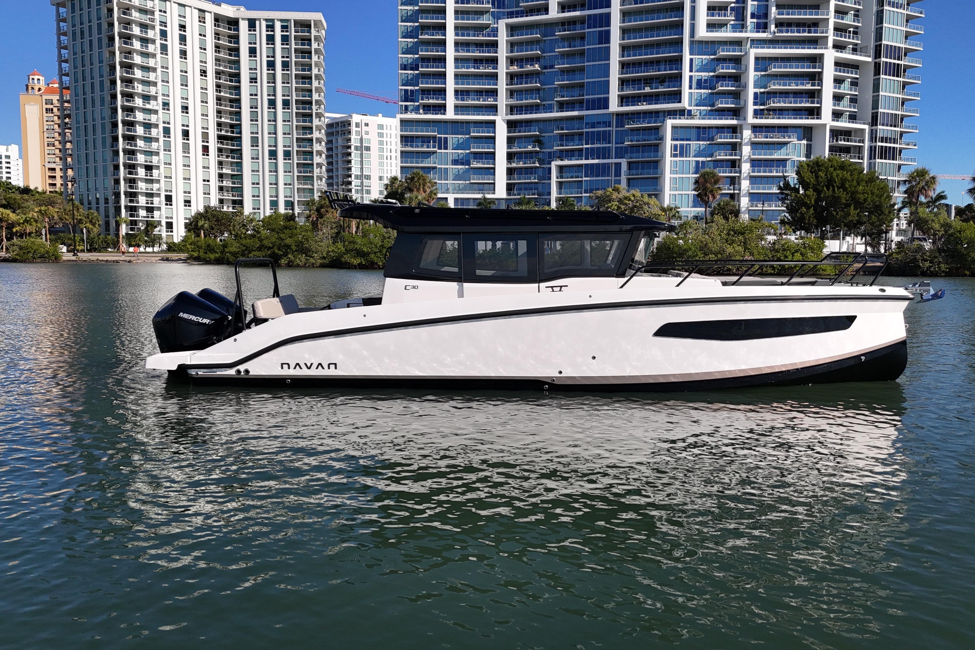The 2026 Navan C30 combines luxury, innovation, and power in a beautifully crafted sport cruiser designed for year-round adventure. With its sleek European styling, enclosed pilothouse, and versatile deck layout, the C30 delivers comfort and confidence whether you’re entertaining at the dock or exploring open water.