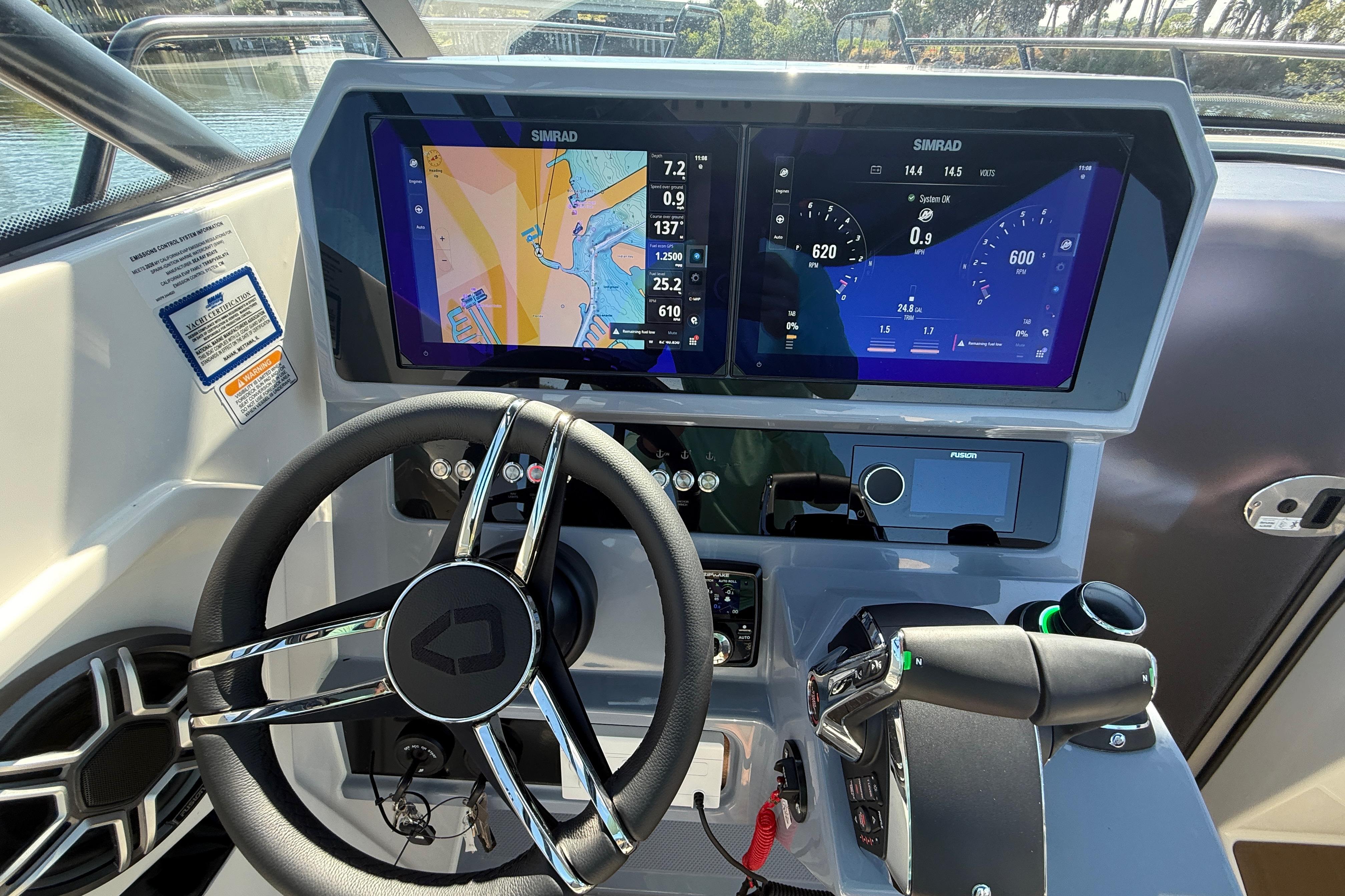 Discover the perfect balance of innovation, luxury, and performance with the all-new 2026 Navan S30. Built to deliver versatility for both cruising and entertaining, this model brings together sleek design and advanced technology for an elevated on-the-water experience. With its bold white hull accented by a black hull bottom and twin 300hp Mercury outboards, the S30 ensures confidence and style wherever your adventures take you.