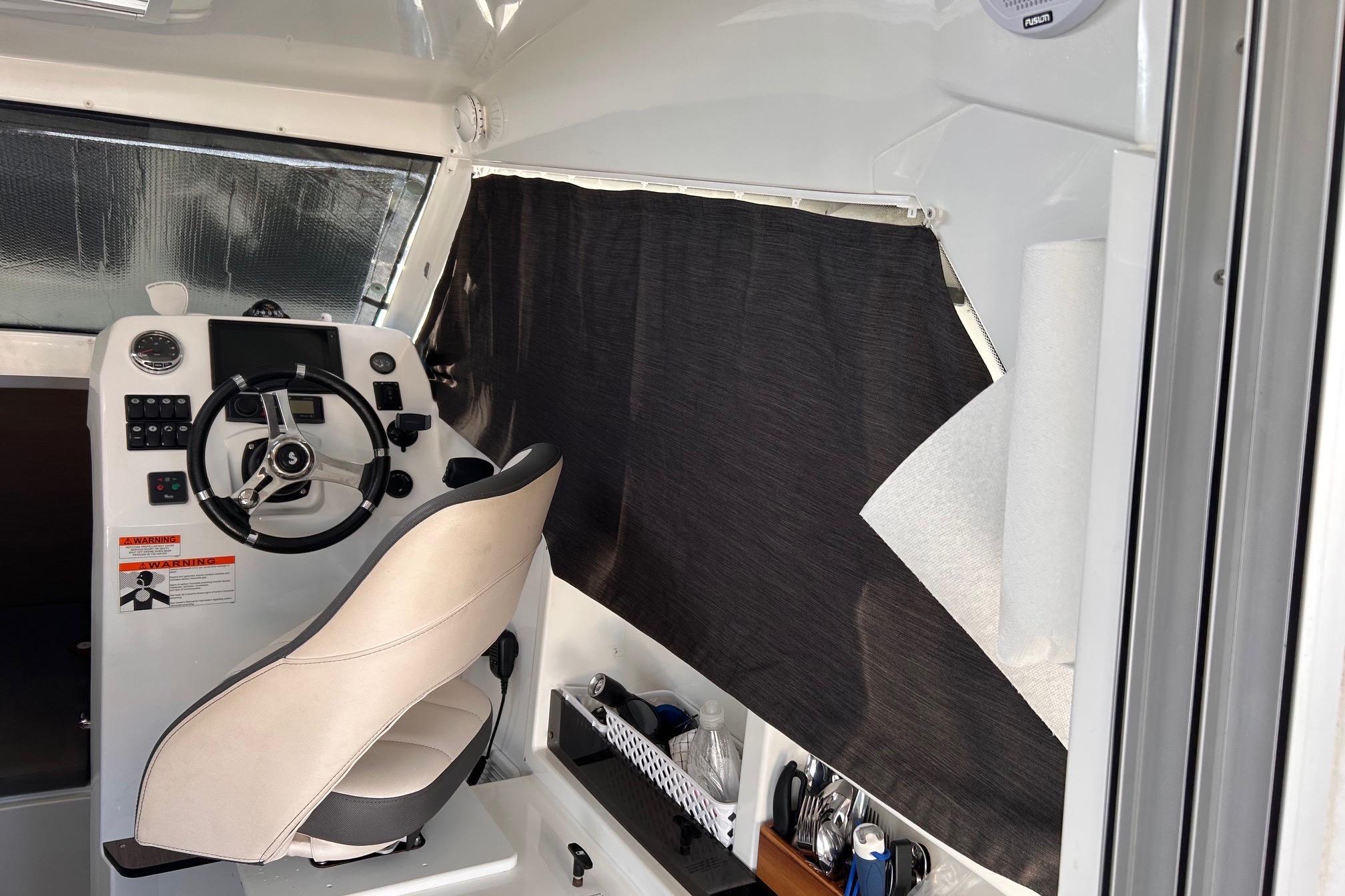 - Sliding wheelhouse hatch with blackout curtains all around.