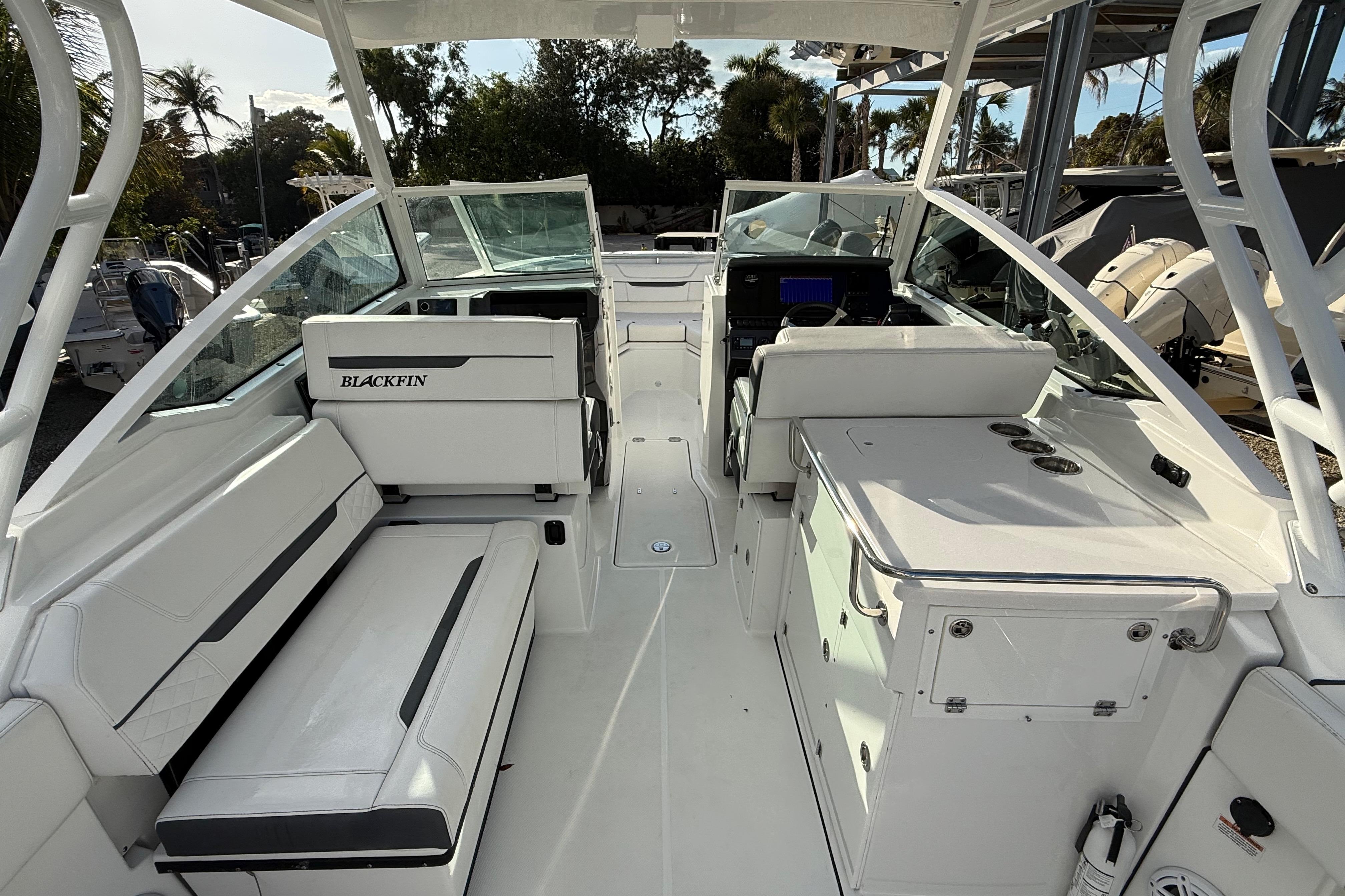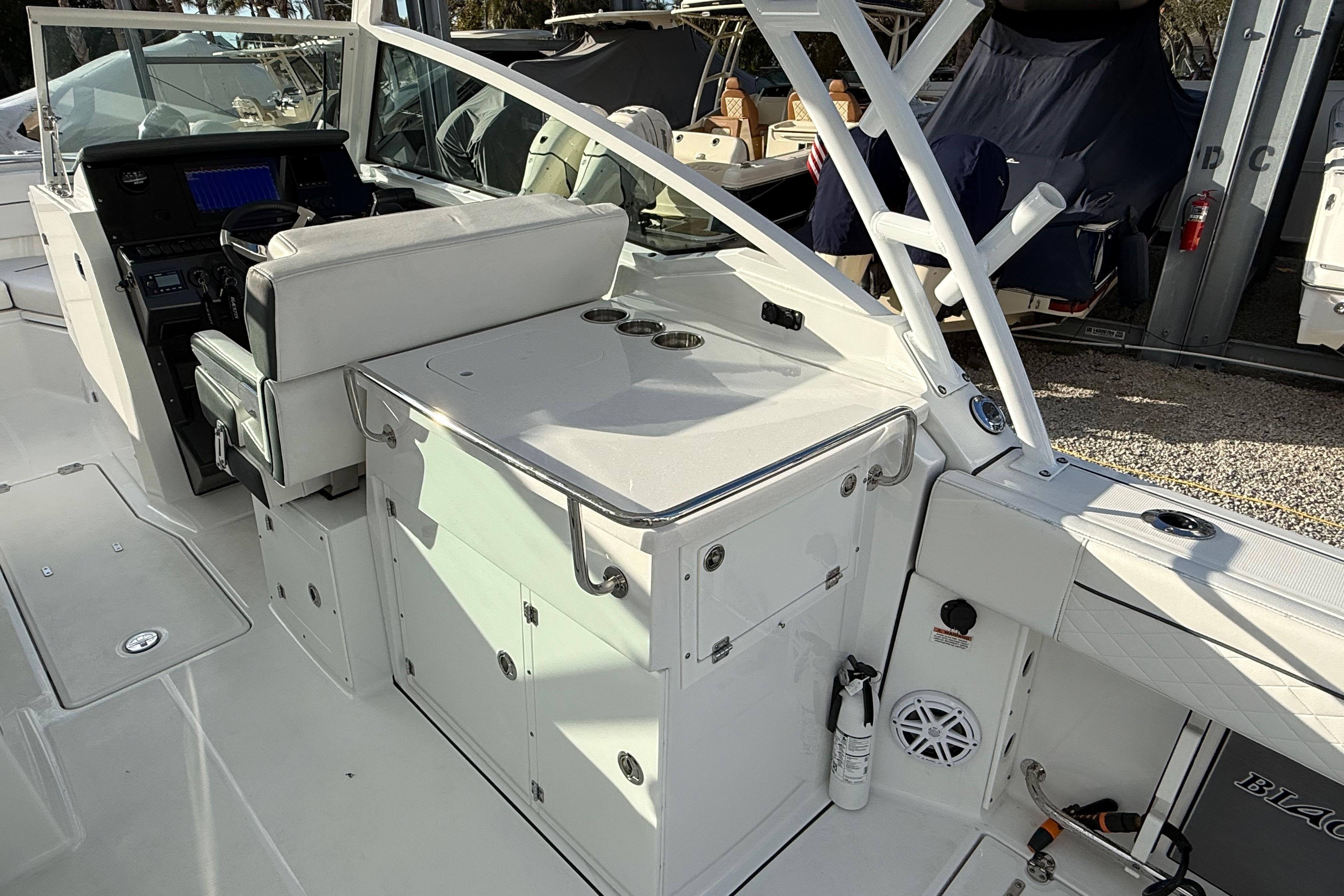 This versatile dual-console boat is the ultimate vessel for reaching your favorite fishing grounds, cruising the open waves or just gathering with friends for a day on the water. It comes loaded with all the necessary features and amenities for the serious fisherman such as a fiberglass hardtop, gunnel, and transom-mounted rod holders, in-floor fish boxes as well as the latest in navigation and fish-finding technology. When the day calls for some recreational boating, hit the water with a Fusion Apollo sound system with JL speakers, convertible port lounge seat with storage, and a wet bar with sink and Yeti Tundra cooler.