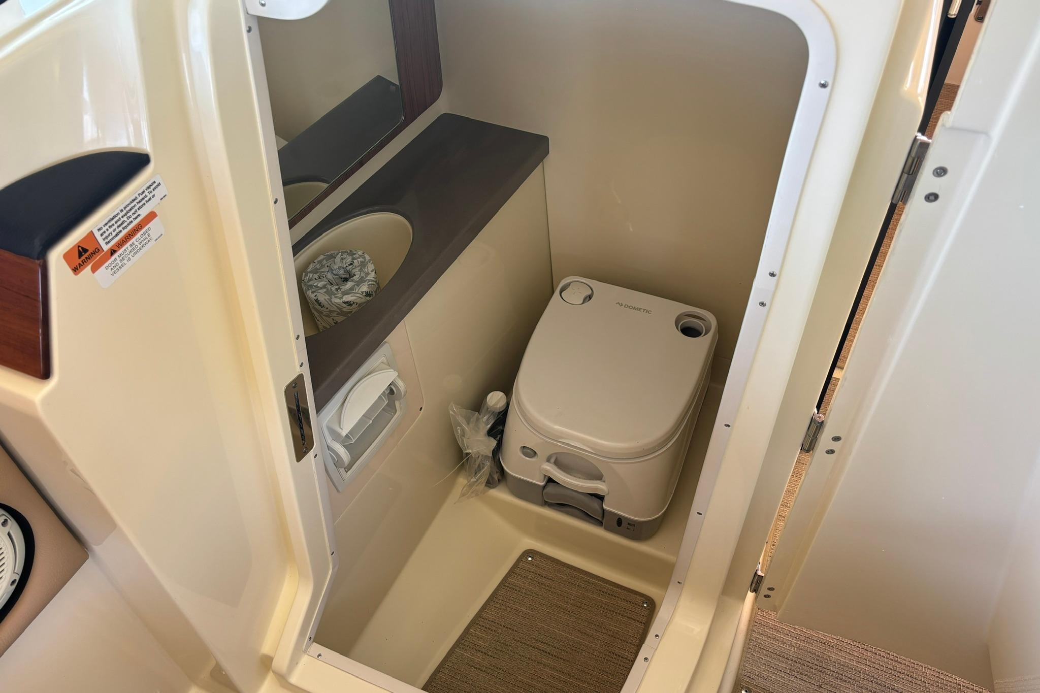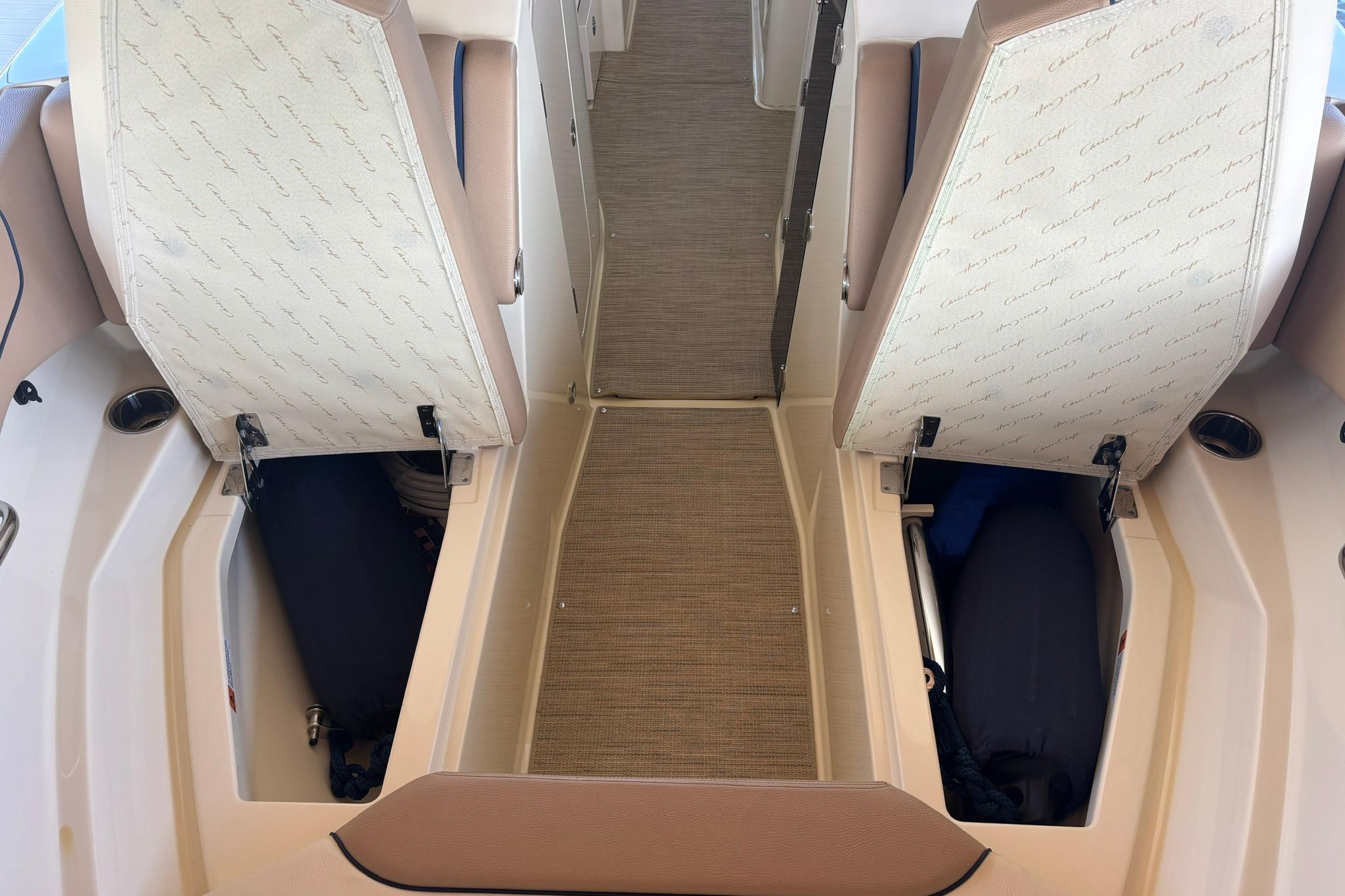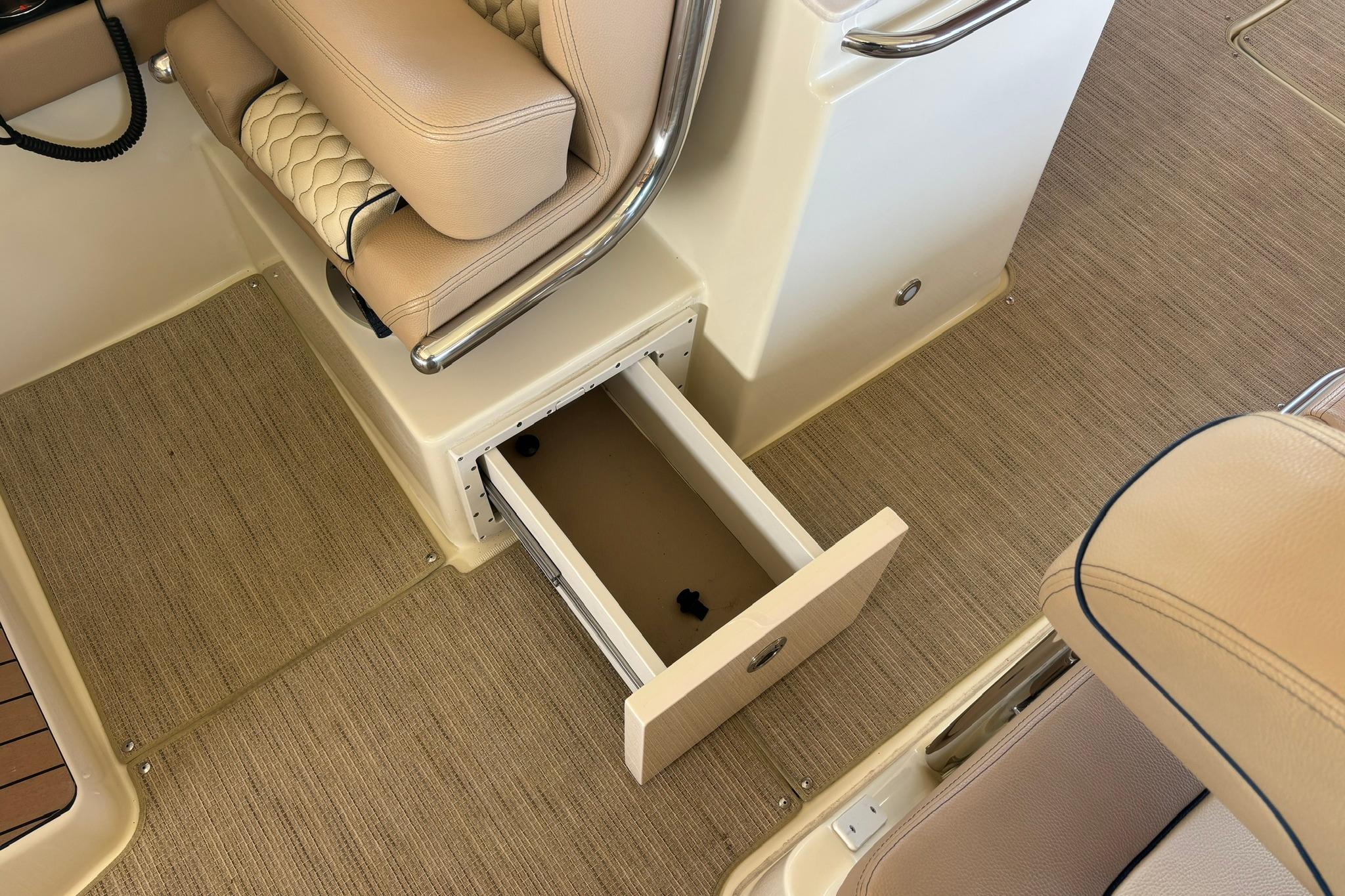 Create your perfect setting aboard the Calypso 24. This model offers convertible social seating the whole family will enjoy. The adjustable port lounge can lay flat or convert to aft or forward facing seating. Entertain by the cockpit galley with the sink and slide out Yeti cooler with SofTech pad. Or, dine on the teak cockpit table around the folding aft seating.