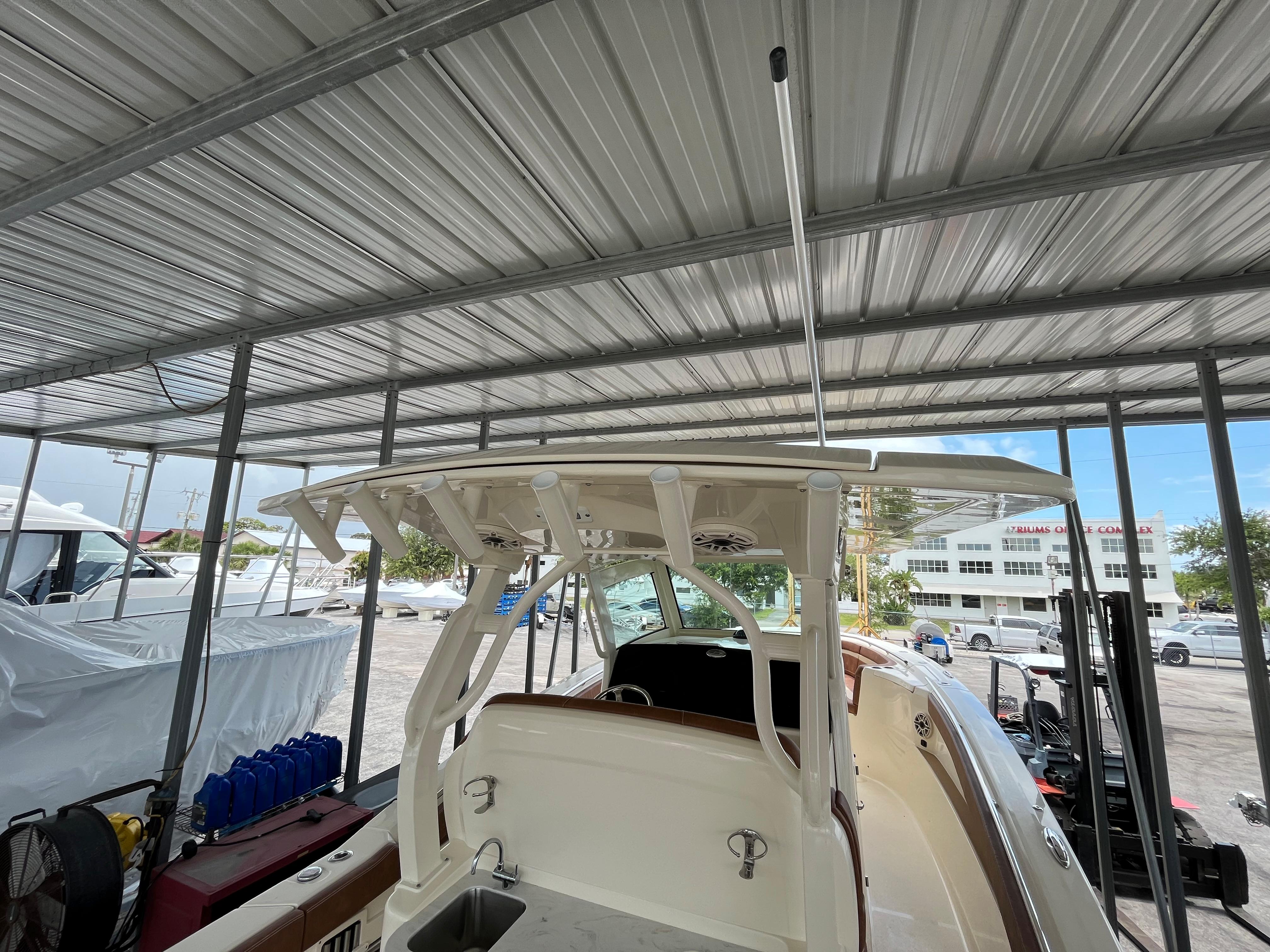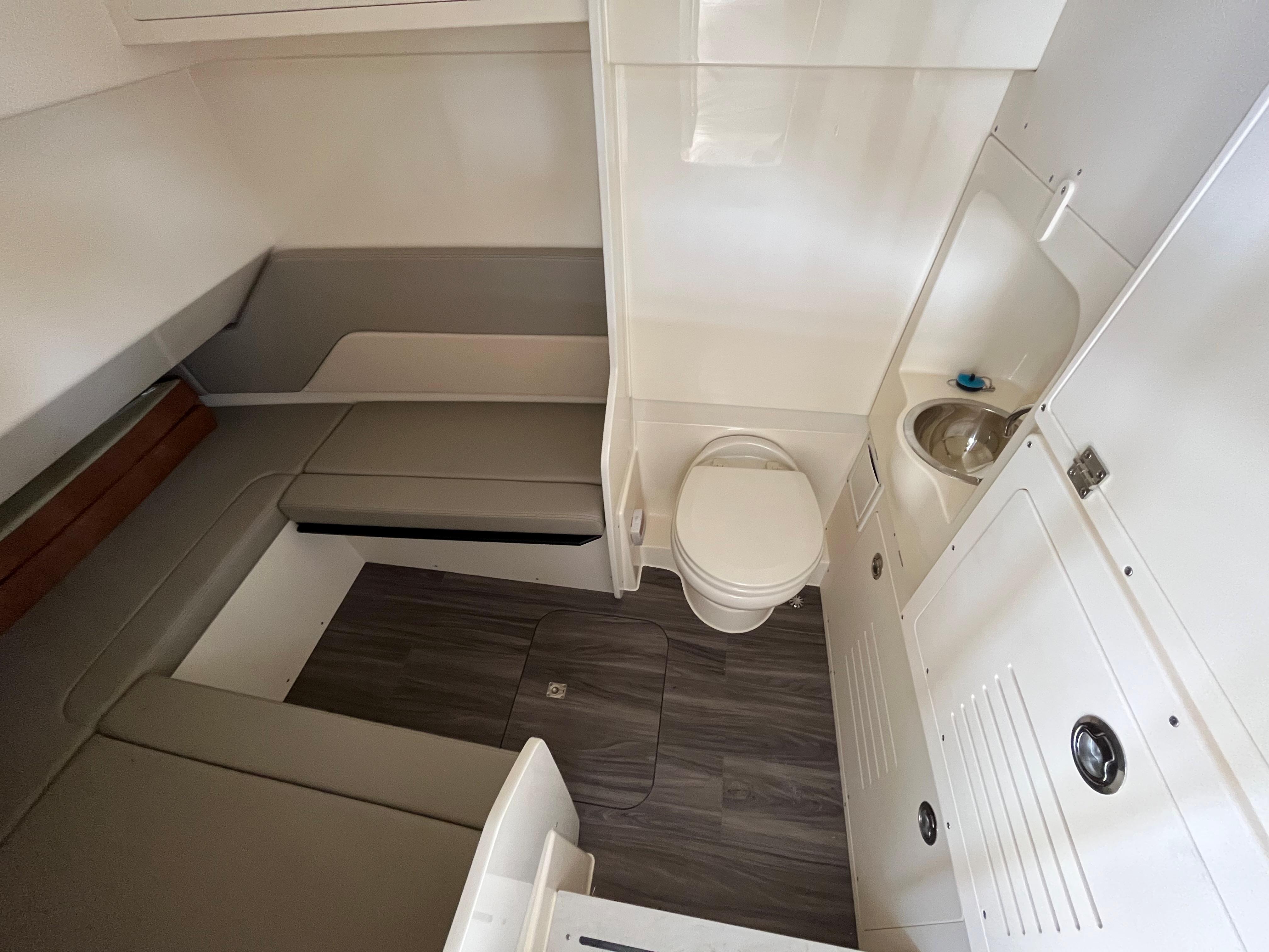 The 330 LXF is the perfect meld of superior craftsmanship and ingenuity. Smartly designed and ready for entertaining, cruising, and fishing. Ample storage throughout, plush seating options, and an inner console berth below with an electric marine head and overhead lighting.