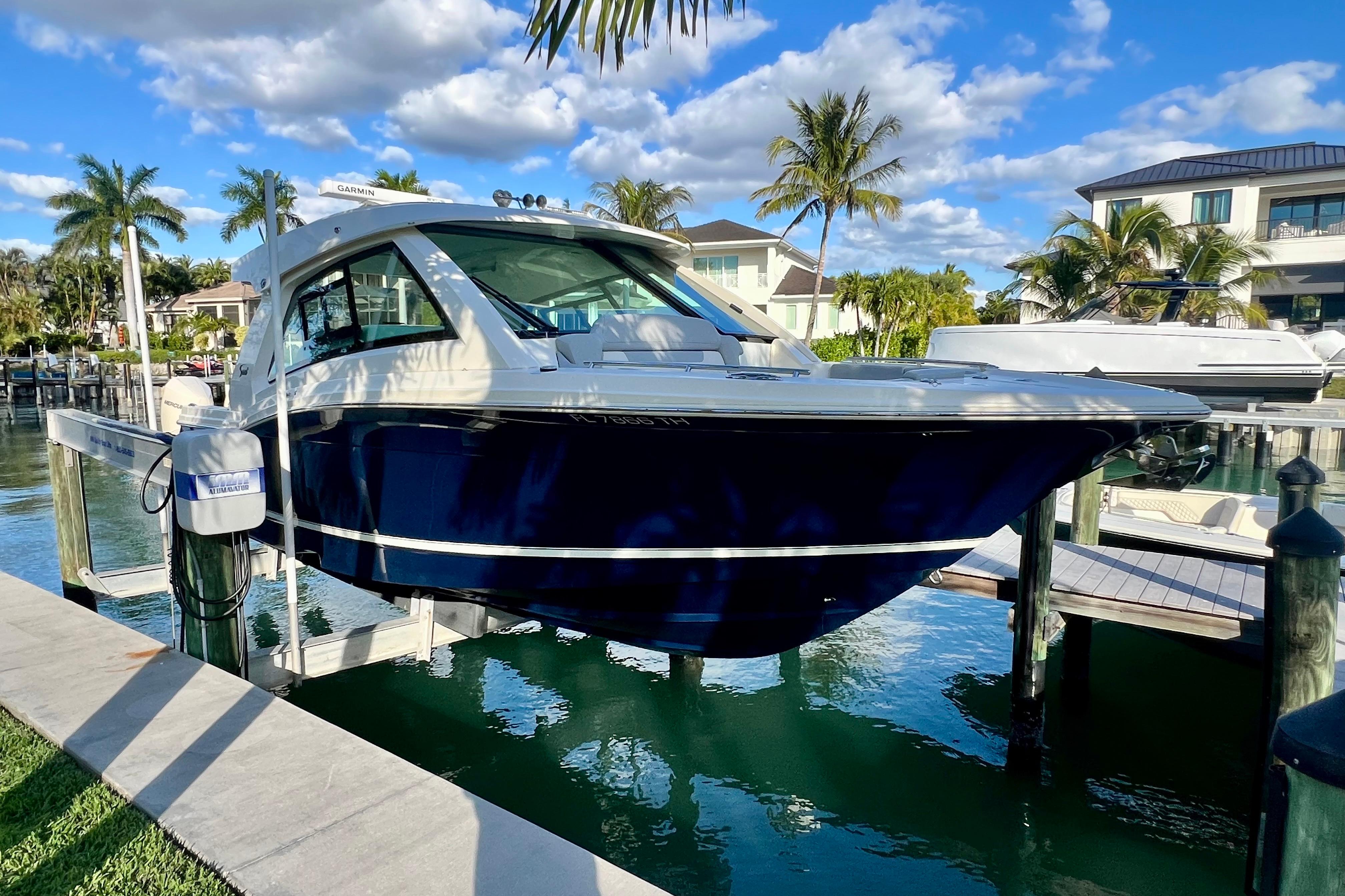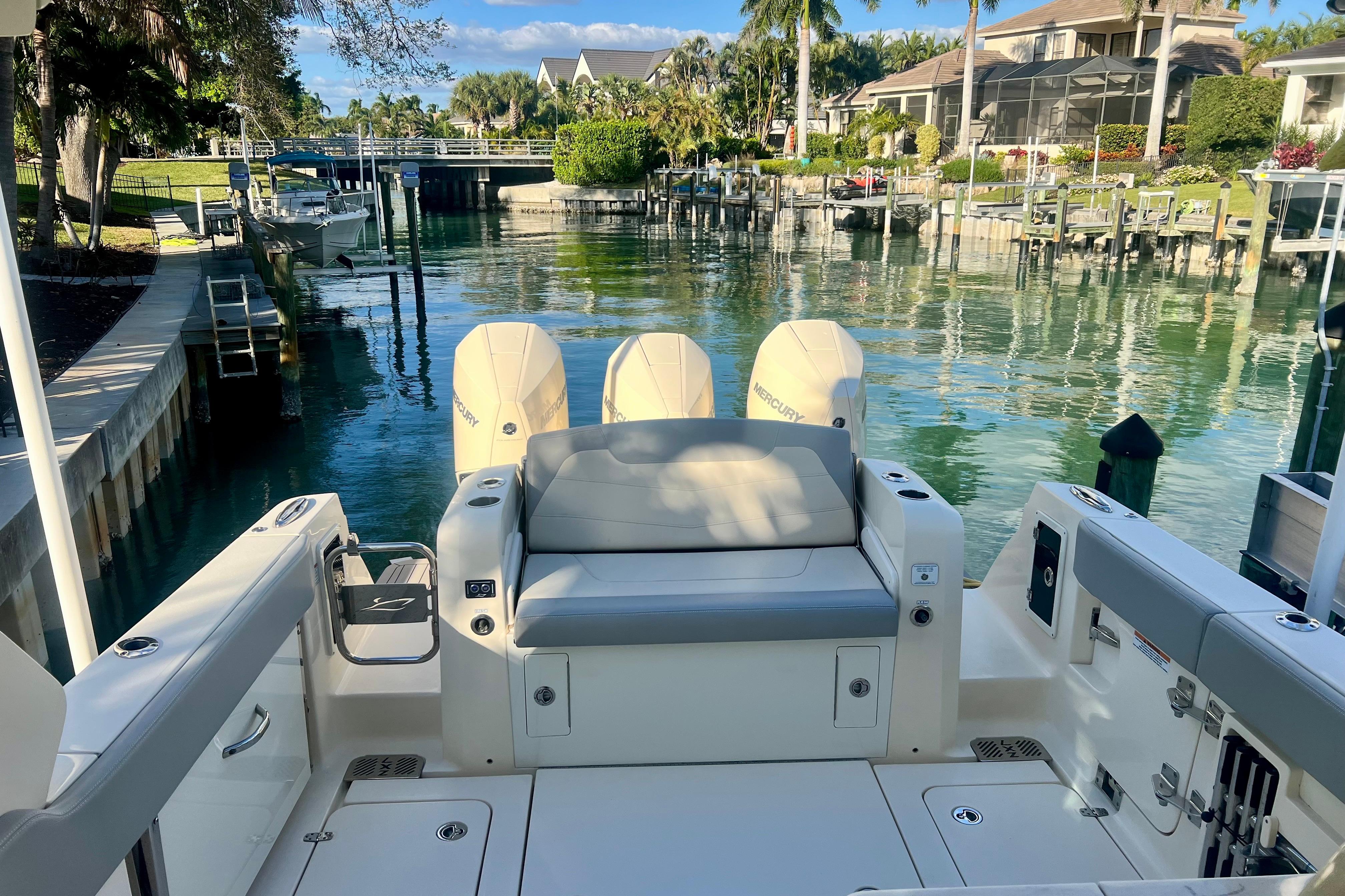 The Scout 350 LXZ is a 34’7” luxury crossover boat built with carbon‑fiber construction, a 10’5.5” beam, and 1,200 HP—designed for premium day‑cruising and overnight comfort