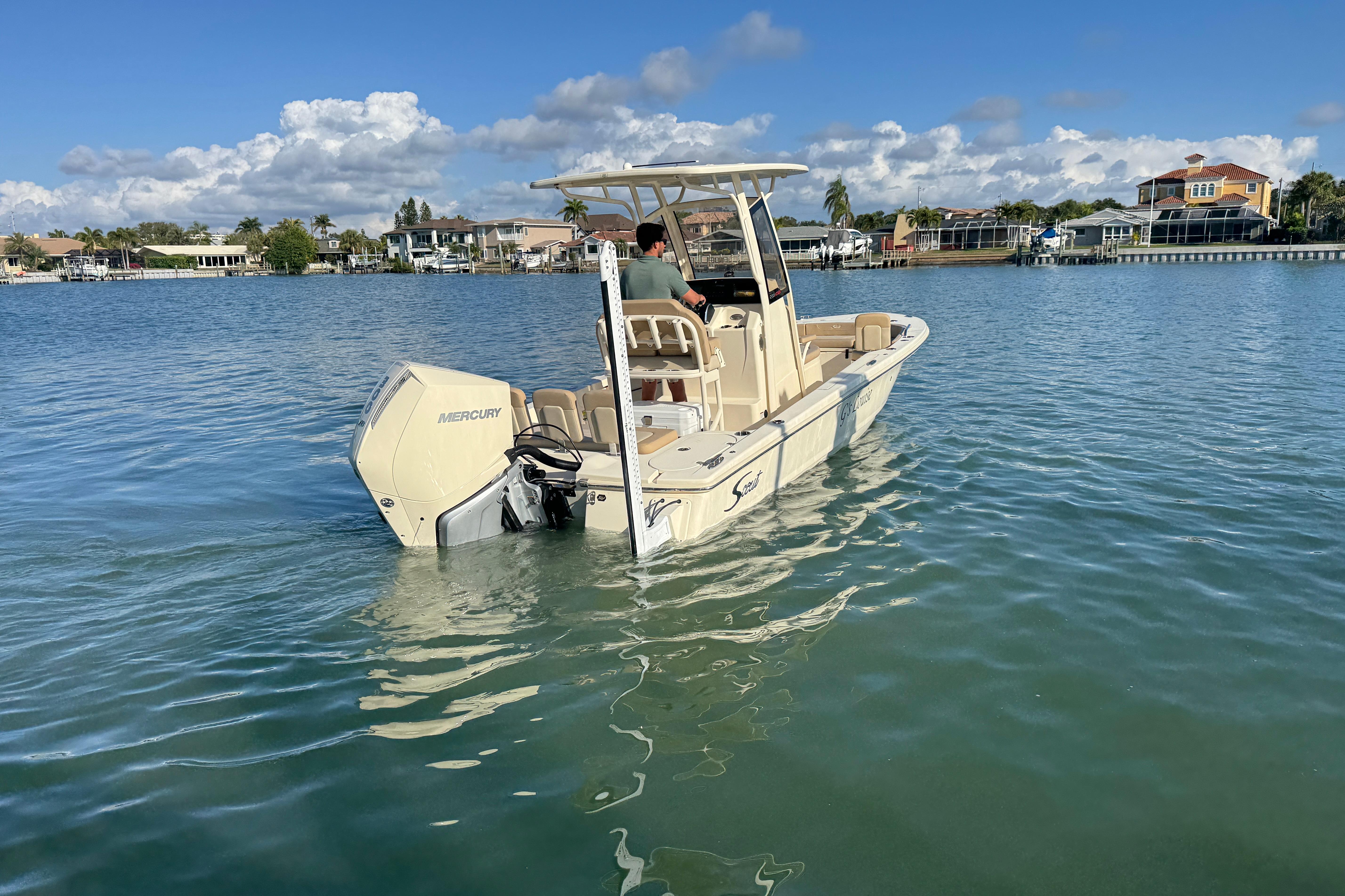 The 231 XSB is our third XS model in the bay boat/inshore line-up and compliments the already popular 231 XS and 251 XSS. This model showcases up to five removable backrests (two receivers forward; three receivers aft) for added comfort for the crew, as well as a patent-pending new thru-hull bow anchor pole feature called the Scout Post. Two optional aft baitwells, ample rod holders and storage, and three leaning post options are all available on this fishing machine. Like our other XS models, the 231 XSB has all the characteristics of a serious bay boat, as well as sexy, aggressive lines and proven high performance.
