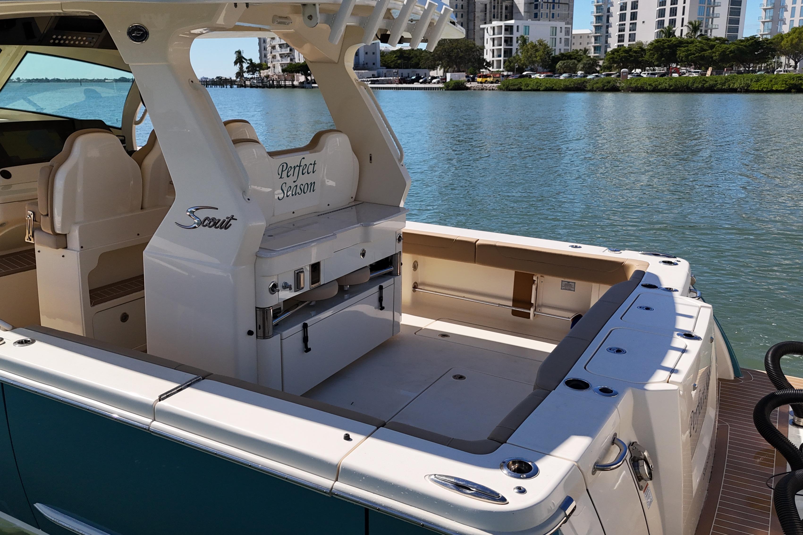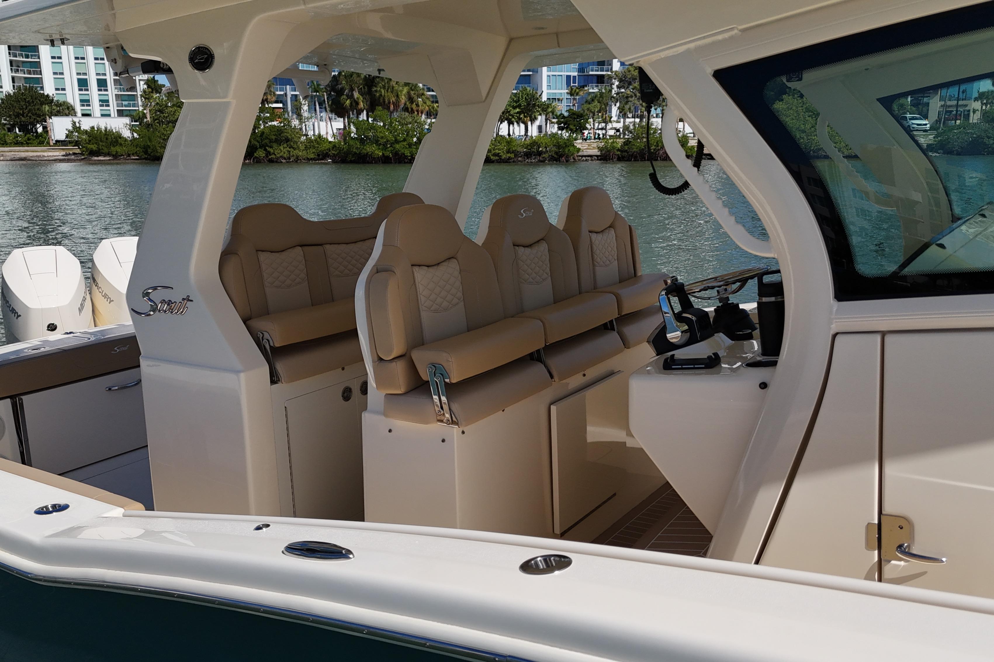 Introducing the stunning 2024 Scout 425 LXF, a remarkable sports fishing boat that embodies performance and luxury, with a custom paint metallic hull and quad 400HP Mercury V10 engines with allowing you to cruise at over 40mph and top speed of 70mph!